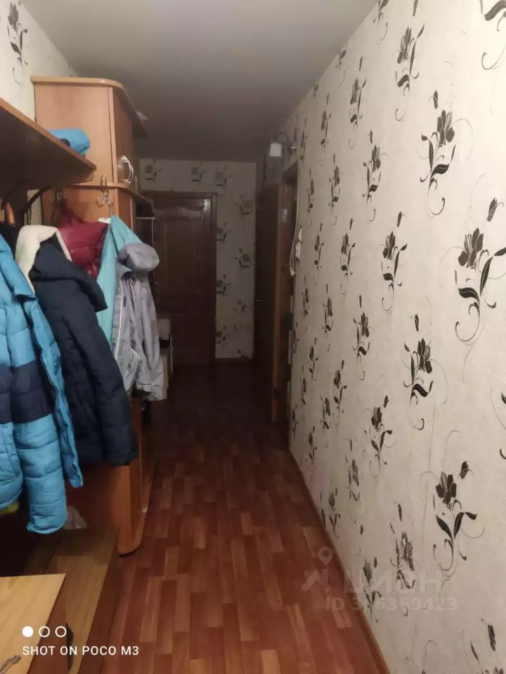 В комнате сделан ремонт. Оклеены свежие обои, на полу линолеум, установлен стеклопакет, поменян радиатор.
