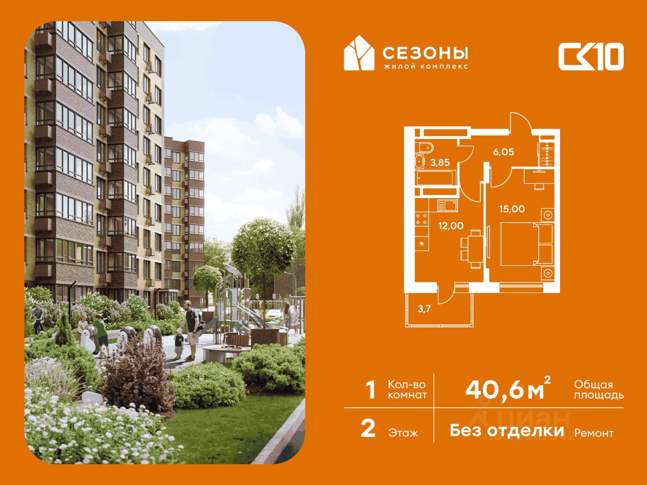 Продаётся 1-комнатная квартира в строящемся доме (Дом 4), срок сдачи: IV-кв. 2026, общей площадью 40.6 кв.м., на 2 этаже. ЖК Сезоны 1 это уникальный проект, созданный вдалеке от шума и суеты мегаполиса. Радоваться каждому дню в любом возрасте здесь будет проще - внутреннее состояние удовольствия поддерживает окружающая обстановка.