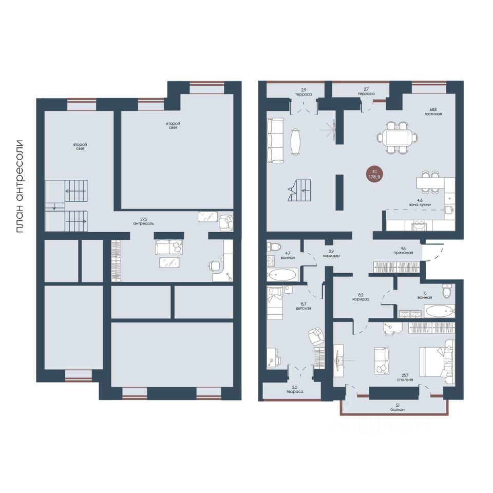 ПЛАНИРОВКИ Разнообразные планировки и нестандартные архитектурные решения. Квартиры с террасами, окном в ванной, вторым светом, гардеробными и мастер-спальнями.