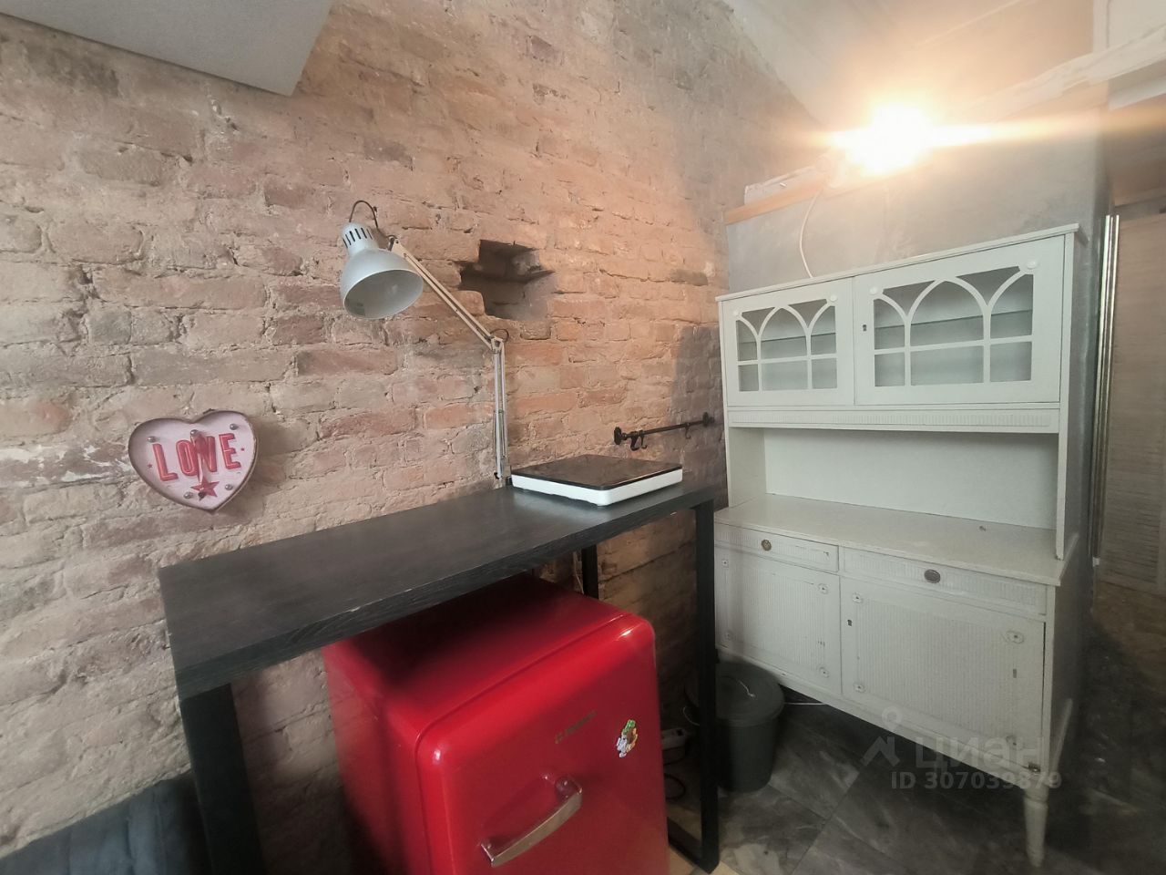 Собственница готова добавить: маленький столик и диванчик. Высота потолка 3,4метра. В студии есть вся необходимая для жизни мебель и техника: спальное место на втором этаже, вместительный холодильник, шкаф, буфет, однокомфорочная плитка.