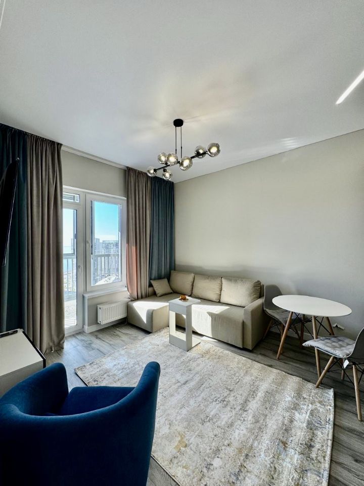 Предлагается к аренде светлая и просторная однокомнатная квартира ЖК Морская набережная с видом на залив, площадь 37 м2, этаж 15, красивый вид из окна во двор и на залив, большая лоджия.