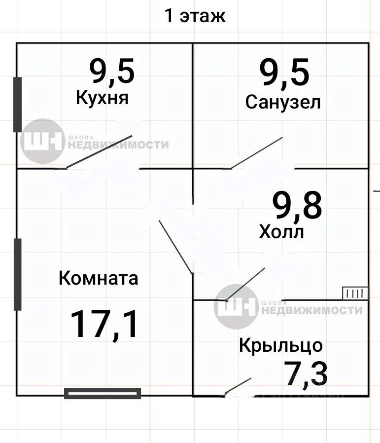 - общая площадь - 120 м² - холл - 9,8 м² - кухня - 9,5 м² - на первом этаже одна спальня - 17,1 м² - санузел - 9,5 м² - крыльцо - 7,3 м² - балкон - 7,3 м² - второй этаж свободная планировка - 46 м² - потолки 3 м