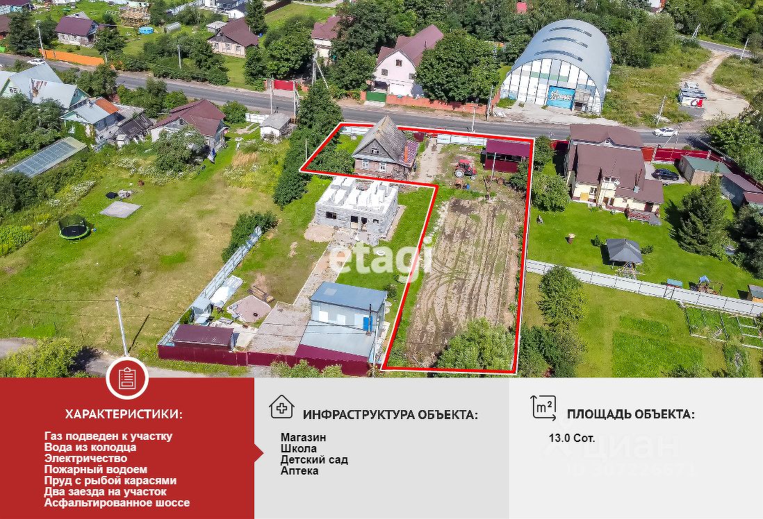 Предлагаем участок 13 соток ЛПХ с домом 63 кв. м. в шести километрах от развязки КАД.
