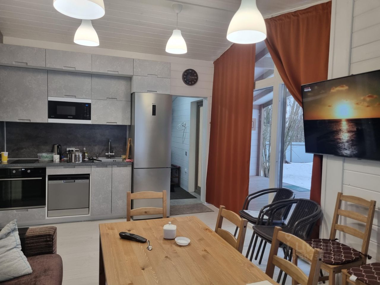 -Сдается теплый новый современный зимний дом с большой террасой со всеми удобствами для круглогодичного проживания от хозяев в живописном и тихом месте, 70км от КАД. Рядом сосновый бор с грибами и ягодами, каскад прозрачных озер, ближайшее озеро Комонь, Зеркальное. Финский залив-2 км, 2 магазина, один из которых работает круглый год, ж/д станция Яппиля, автобусная станция -c 01 Мая — 30 Июня -Май - 90.000 -Июнь - 100.000 -Дом каркасный, площадь-80 м2, мощность электроэнергии-15 кВт, уличный кран для полива, деревянные финские стеклопакеты, установлены москитные сетки на всех окнах, интернет с Wi-Fi -Участок - 8 сот, парковочные места перед домом для 3-х машин, охрана со шлагбаумом -Имеются собственная скважина /питьевая вода/, автономная станция биологической очистки Zorde /на 7 человек/, молодой дуб, яблоня, крыжовник, малина, лесной орех, сосна, елка новогодняя, детская площадка, зона для садоводов -Участок солнечный, сухой /отсыпан был песком/, прямоугольной формы, имеется забор по всему периметру, имеется мангальная зона, также есть рядом родник -Рядом сосновый бор с озером для любителей лыж, коньков и квадроциклов -Бытовая техника Electrolux: варочная индукционная плита, посудомоечная машина, духовой шкаф с функцией подачи пара, встроенная кухонная вытяжка над рабочей зоной, стиральная машина Haier. Холодильник Haier 2-х камерный большой No Frost. Микроволновка/СВЧ - Samsung -Коридор: установлена система хранения одежды и обуви-открытый шкаф-купе, кушетка -Кухня :фасады мебели изготовлены из водонепроницаемого и ударопрочного ЛДСП, все дверцы без ручек, имеется система закрывания доводчиков, мойка - нержавейка, смеситель с подачей питьевой воды, которая проходит очистку через 3-х барьерный фильтр, установлен дозатор для жидкого мыла Имеется весь необходимый инвентарь для проживания /кухонная посуда, столовые приборы/, лопаты -WC - 6 м2: в санузле имеются бойлер Electrolux на 100л, в душевом стеклянном итальянском уголке Cesare - душевая стойка Iddis с полочкой, унитаз подвесной AM.PM с гигиеническим душем, комплект- раковина + шкафчик с подсветкой + система доводчиков, стационарный фен, электрическое полотенце-сушило Sunergi, финская сауна из Алтайского кедра, пол с подогревом, имеются все акцесуары -Гостиная - 20 м2, имеется красивый и функциональный камин -Thorma. Стол + 6 стульев, комфортный раскладной диван, made in Italy. Большой TV LG -Спальня-10 м2: 2-х спальная итальянская кровать 160*200 с 2-мя прикроватными тумбочками -Детская-10 м2: 2 односпальные кровати 90*200 , комод -Отопление производится из 4 -х конвекторов Electrolux / классные бесшумные конвектора на автономном управлении: 1) антизамерзание 2)ночной режим для сна 3)комфортный дневной режим -Соседи все адекватные -Локация очень классная: Курортный район, Приморское шоссе, 30км за Зеленогорском, ресторан в Окуневой бухте, храм в Озерках -Комиссии нет -Коммунальные расходы-только электричество
