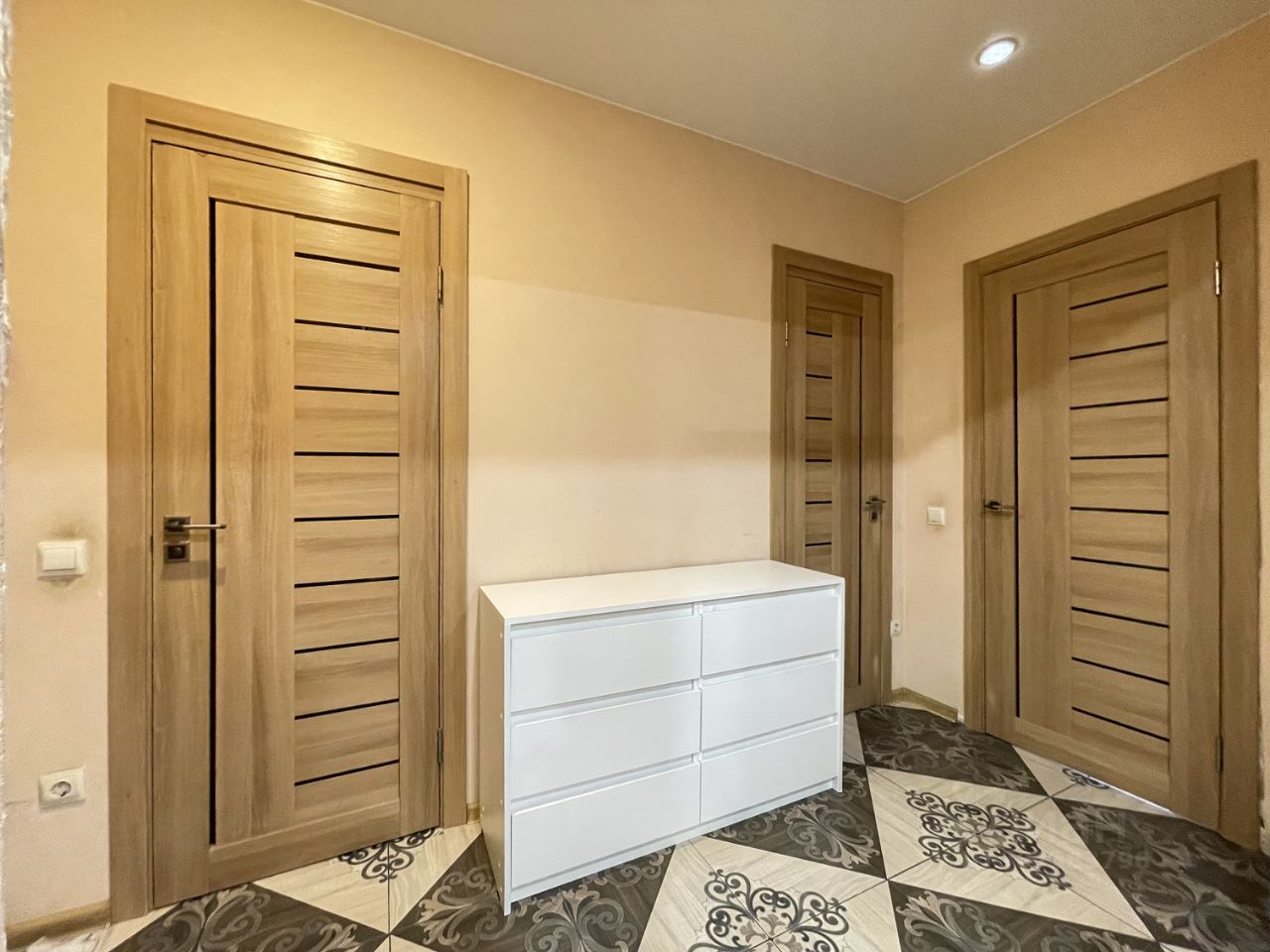 В квартире выполнен ремонт с использованием современных материалов: Установлена современная входная металлическая дверь. Натяжные потолки по всей квартире Пол на кухне и в прихожей - керамогранит, в комнатах - ламинат. ТЕПЛЫЕ ПОЛЫ в прихожей.
