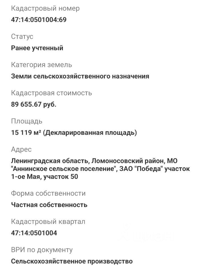 Кадастровый номер 47:14:0501004:69