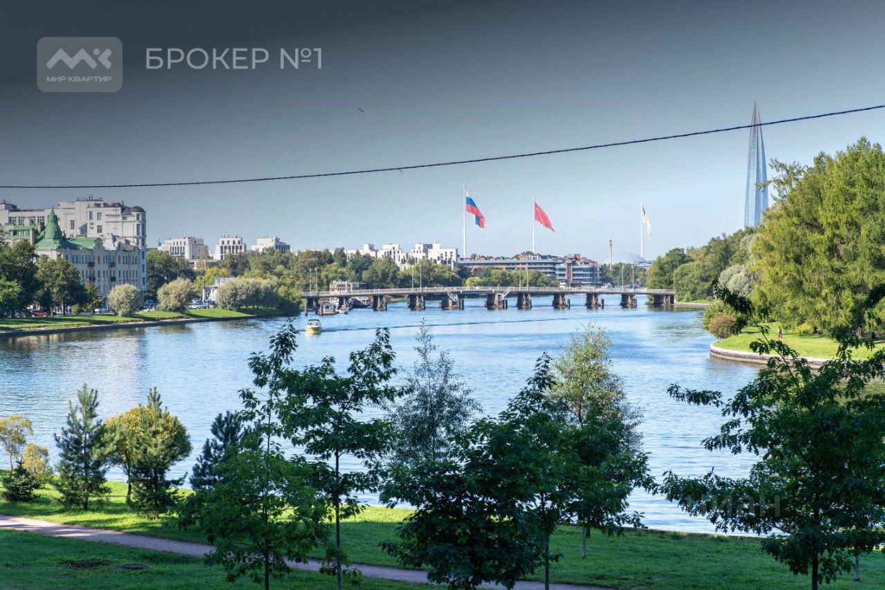 Двусторонняя квартира площадью 218 кв.м расположена на втором этаже и обращена своими окнами на набережную Средней Невки, с которой открывается панорамный вид на Елагин остров. Окна спальни и ванной комнаты выходят во благоустроенный двор-атриум , который накрыт стеклянным куполом. Две мастер- спальни со своими сан. узлами и гардеробными, гостиная 60кв.м с видом на воду.