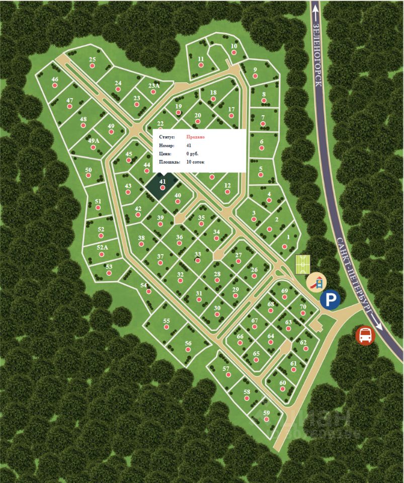 Расположение просто идеальное: всего 10 км от Петербурга (30 минут на машине) и час езды до центра города. К знаменитым курортам Репино и Зеленогорску можно добраться за 20 минут.