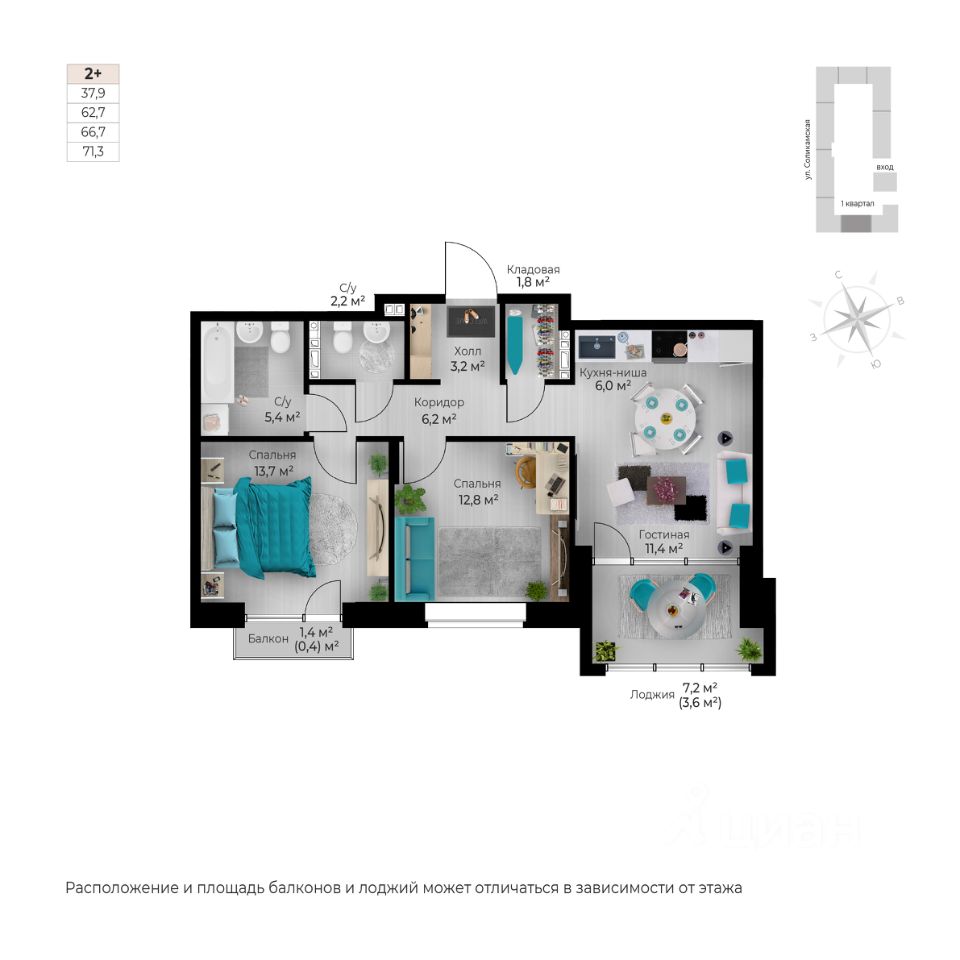Продаётся 3-комнатная квартира в строящемся доме (I этап), срок сдачи: IV-кв. 2026, общей площадью 67.7 кв.м., на 5 этаже. Новый жилой комплекс ''Ветлан'' от застройщика ''Пермит'' расположен в г. Пермь на ул. Ивана Франко.