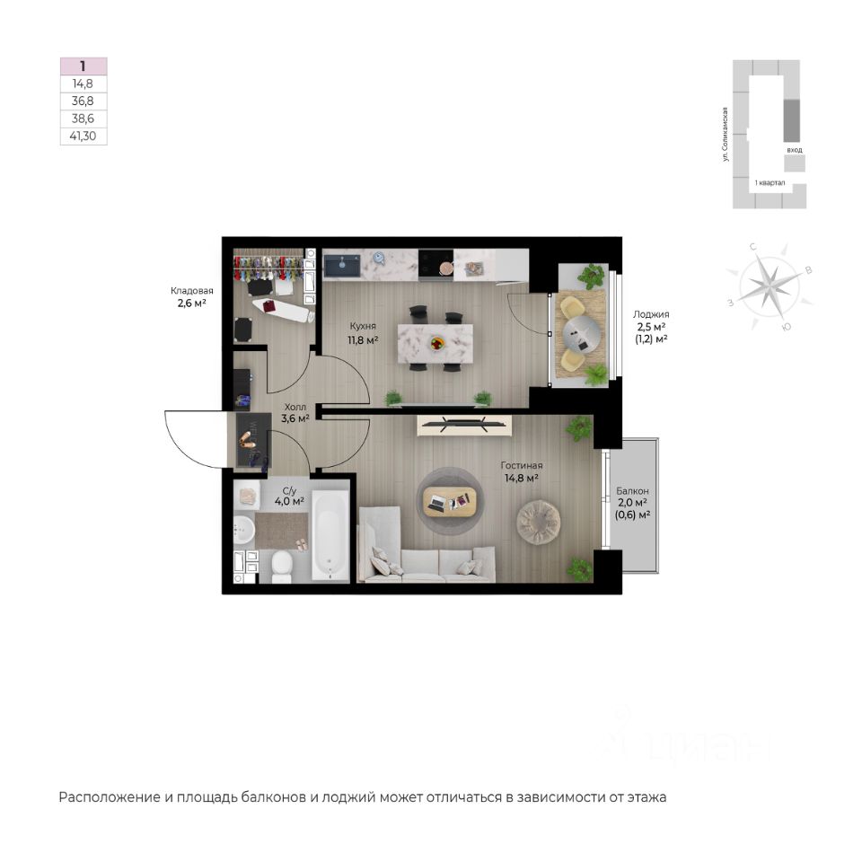 Продаётся 1-комнатная квартира в строящемся доме (I этап), срок сдачи: IV-кв. 2026, общей площадью 41.3 кв.м., на 6 этаже. Новый жилой комплекс ''Ветлан'' от застройщика ''Пермит'' расположен в г. Пермь на ул. Ивана Франко.