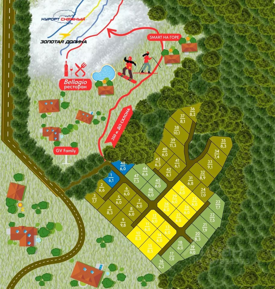 В продаже земельные участки в КП Высокогорье всего в часе езды от г. Санкт-Петербурга на север. Площадь земельного участка от 6 соток. В 350 метрах от горнолыжных курортов ''Золотая Долина'' и ''Снежный''. Коммуникации - электроснабжение 15 кВт, центральное водоснабжение. центральная газификация. на въезде КПП с шлагбаумом.
