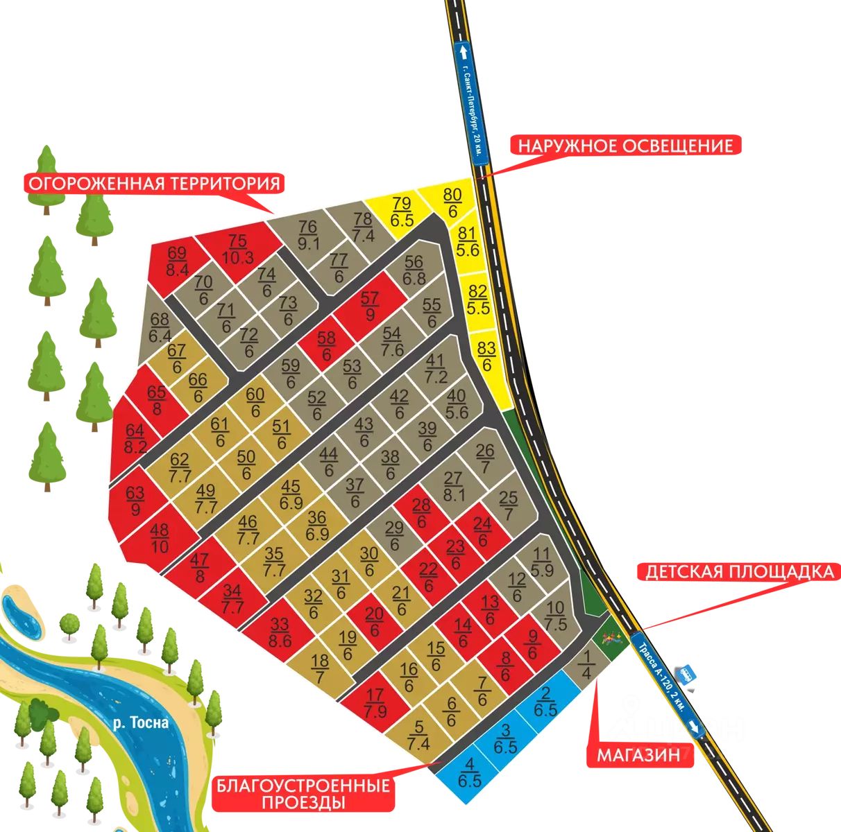 ID: 310533 В продаже земельные участки в КП Саблинское предместье всего в 29 км от г. Санкт-Петербург на юге ЛО. Площадь земельного участка от 6 до 11 соток. Вокруг живописная природа, леса, всего 150 м до берега реки Тосна. Шикарное место для отдыха за городом. Коммуникации - электроснабжение 15 кВт (прямой договор), водоснабжение от индивидуальной скважины, освещение, центральная газификация. Широкие внутриквартальные проезды из асфальтовой крошки, на въезде в поселок КПП с шлагбаумом, огороженная территория, детская и спортивная площадка Саблинское предместье - Ваш прекрасный выбор для строительство дома в экологически чистом районе Ленинградской области Рассмотрим все виды расчета: наличные, ипотека, рассрочка на 5 лет без первоначального взноса, любые сертификаты и гос. субсидии.