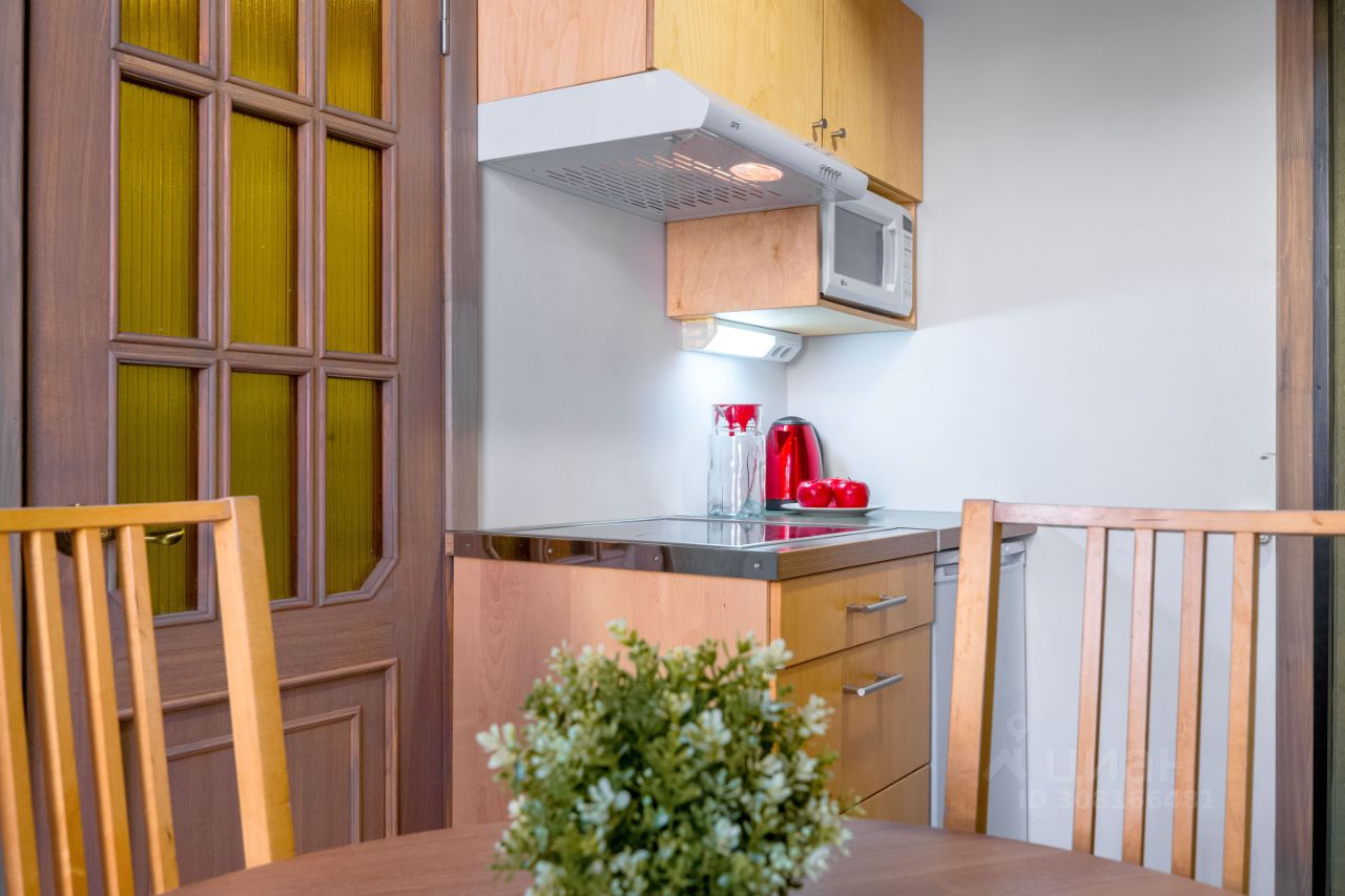 В студии имеeтcя все необходимое для комфортного проживания: - Coбcтвeннaя кухня (электроплита, xoлодильник, электрический чайник, посуда для приготовления пищи, обеденный стол) - Стиральная машина в общей зоне - Собcтвeнная вaннaя комната (душ, фен, туалет) - Удобная двуспальная кровать с качественным матрасом, двуспальный диван - Телевизор со смарт-ТВ, wi-fi - Утюг, гладильная доска