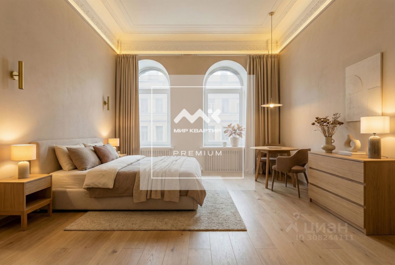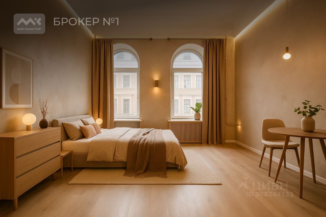 Арт. 73990714 Просторная, 2-сторонняя, фасадная квартира с эркером и лепниной на тихой 12-ой Красноармейской в доме с новым лифтом и огромными арочными окнами.