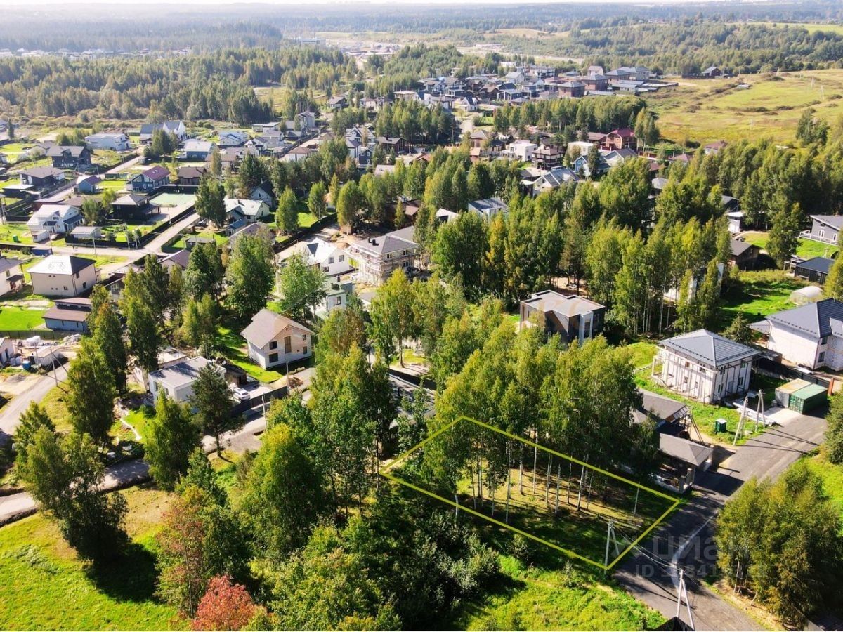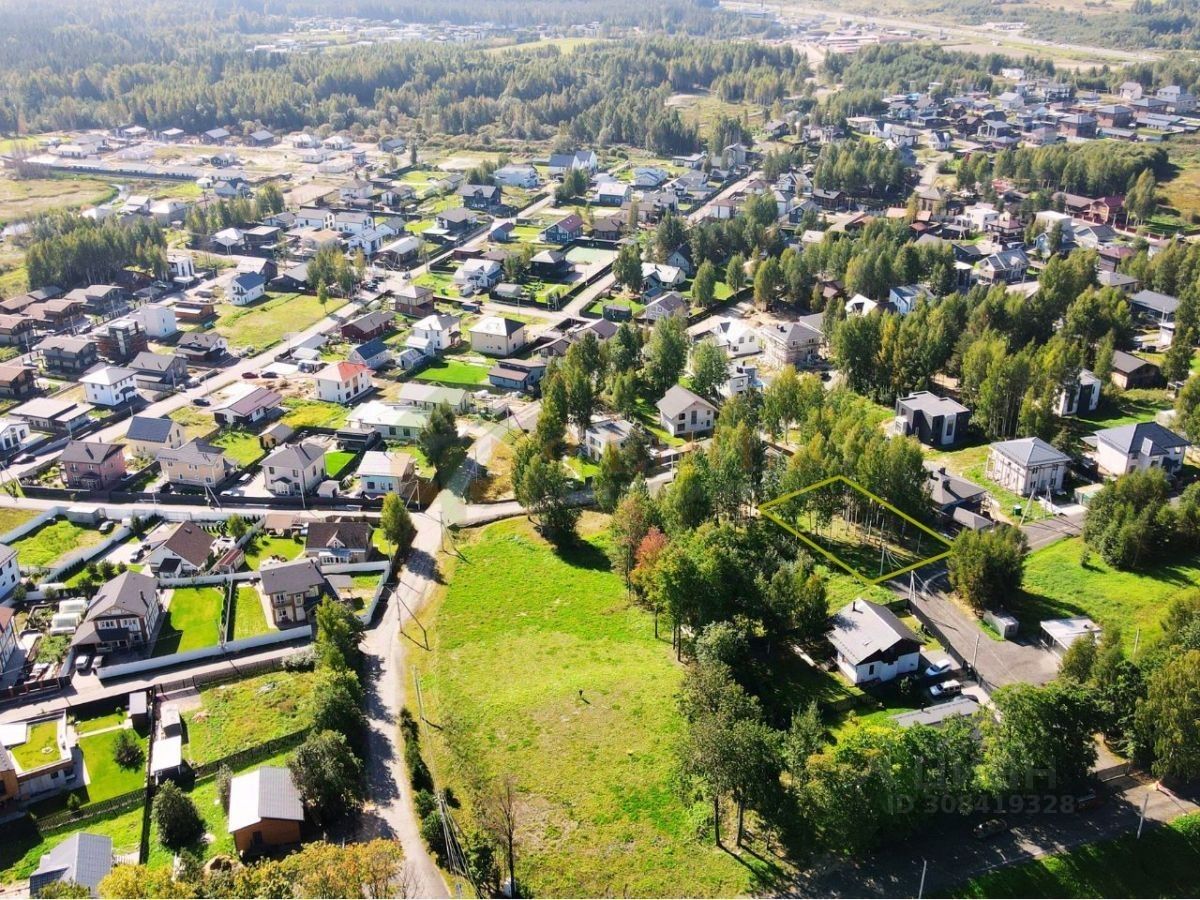 Участок 9,09 соток: - Находится в самой высокой точке поселка, имеет естественный уклон, - На участке оставлены только крупные деревья (березы и сосны), весь кустарник удален. - Расположен в тупиковой улице с отдельным въездом.
