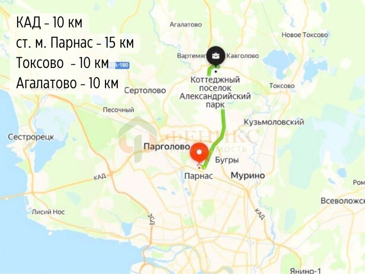 Транспортная доступность: д. Скотное - 5 мин. КАД - 10 мин. на автомобиле. Станция метро ''Парнас'' и ''Проспект Просвещения'' - 15 км. Автобусная остановка - 10 мин. неспешным шагом от участка. Вартемяги, Кавголово, Токсово, Агалатово - 10- 20 мин. на автомобиле.
