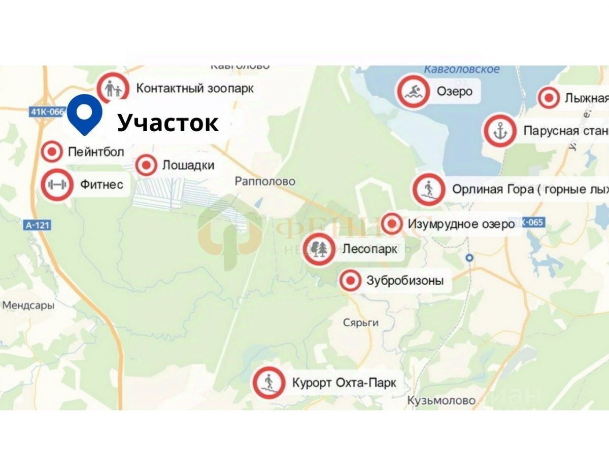Инфраструктура: - В 5 минутах езды от участка Лента, Пятерочка, Магнит, фермерские магазины, кафе и пекарни. - Ходит школьный автобус. Ближайшие школы и детские сады в д. Скотное, Вартемяги, Агалатово, Осельки, Токсово. - Рядом с поселком Кавголовское озеро, Зубропитомник, Охта-парк, Ново-Кавголовский Лесопарк, конные клубы, контактные зоопарки, лыжные трассы и многое другое для семейного и активного отдыха.