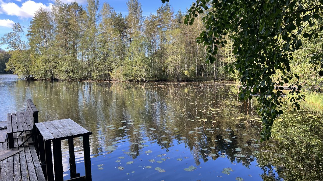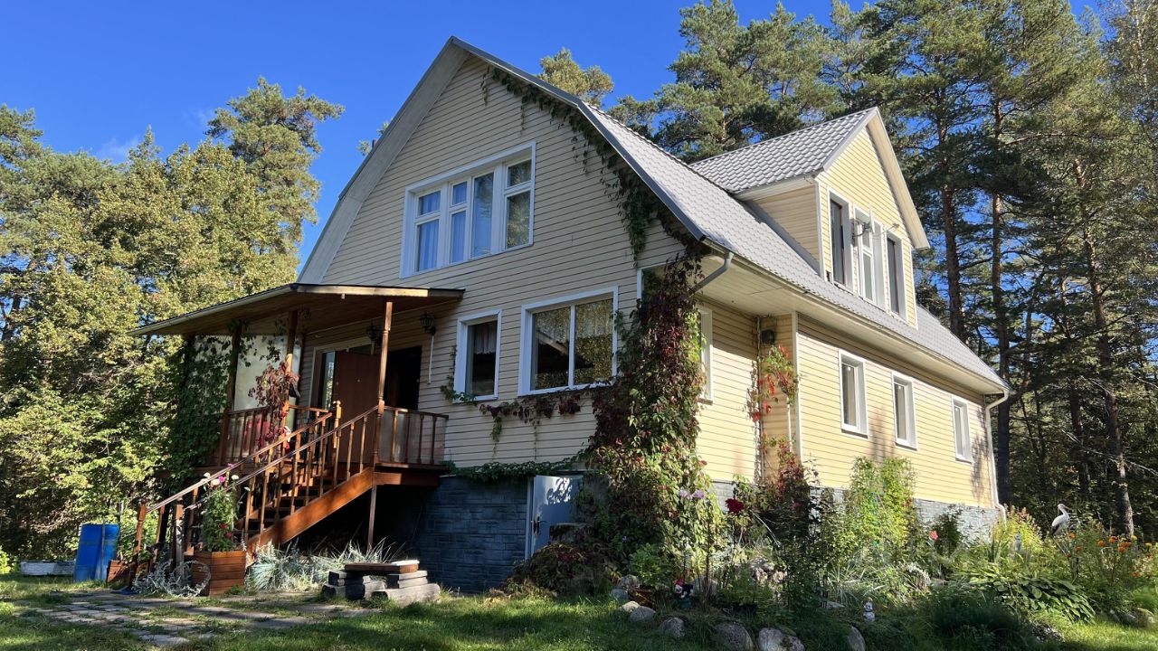 Участок и дом в уникальном месте! Среди сосен, спуск к озеру! На берегу озера баня.