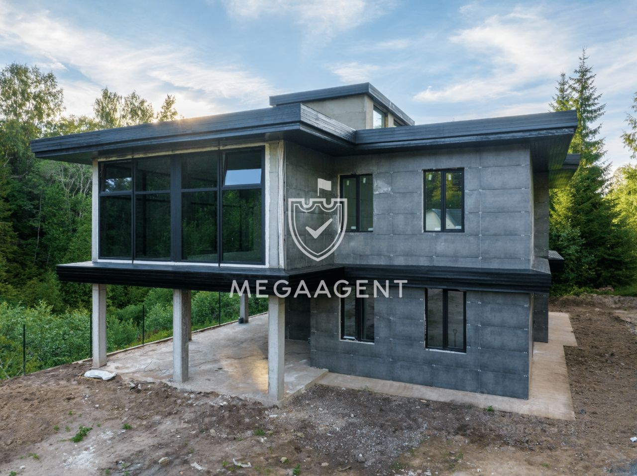 - 16,9 соток - Дом 480м2 + лаундж-зона на крыше - Панорамные окна - На участке есть отдельное здание под гараж на 75м2 - потолки 3,1-3,2 м - 4 санузла, сауна - электричество 15 кВт