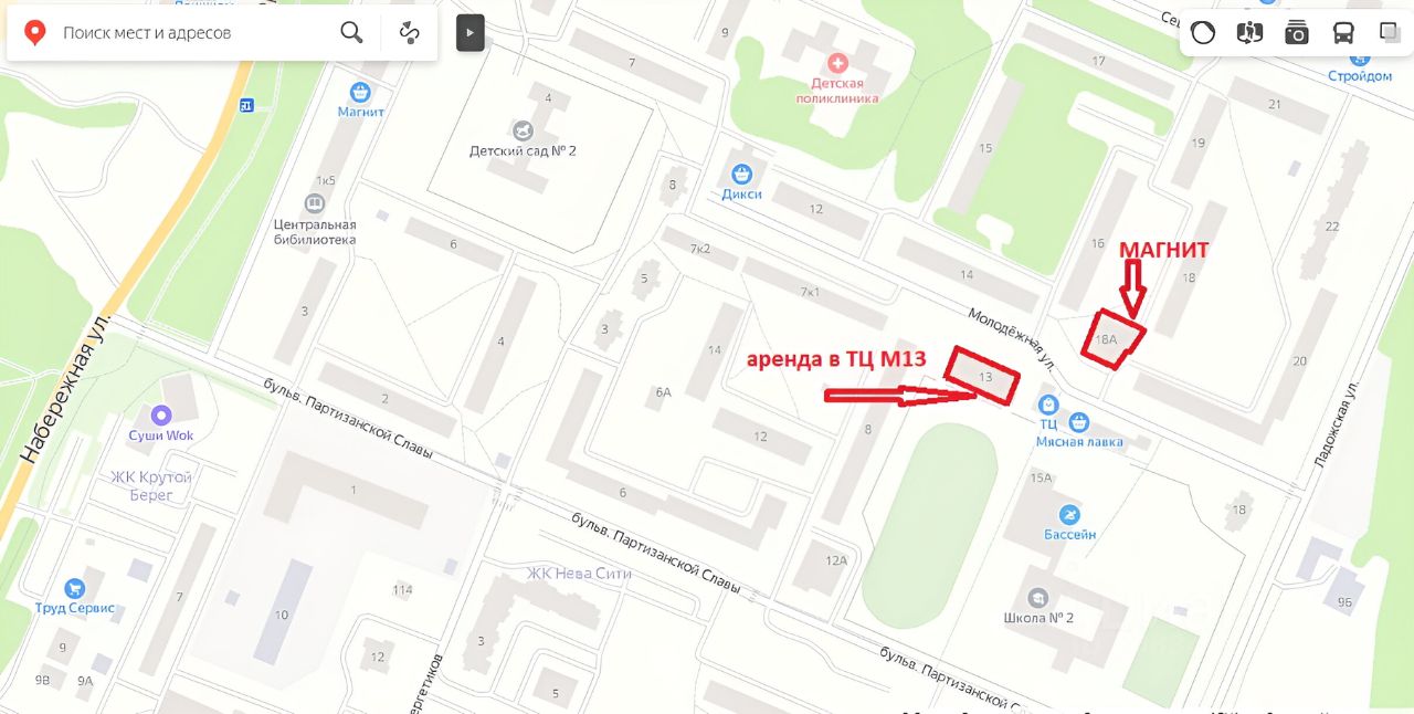 Коммерческое помещение с отделкой в Торговом комплексе районного значения Адрес: Ленинградская область, г. Кировск, ул. Молодежная, д. 13 Торговый комплекс расположен внутри крупного жилого массива рядом находится продуктовый ритейл Семишагофф, Магнит, ДИКСИ Собственная парковка, удобный подъезд, близость транспортных коммуникаций, наличие второго эвакуационного выхода, отдельная зона загрузки товара, без пересечения с потоком покупателей Второй этаж, площадь 70 кв.м.