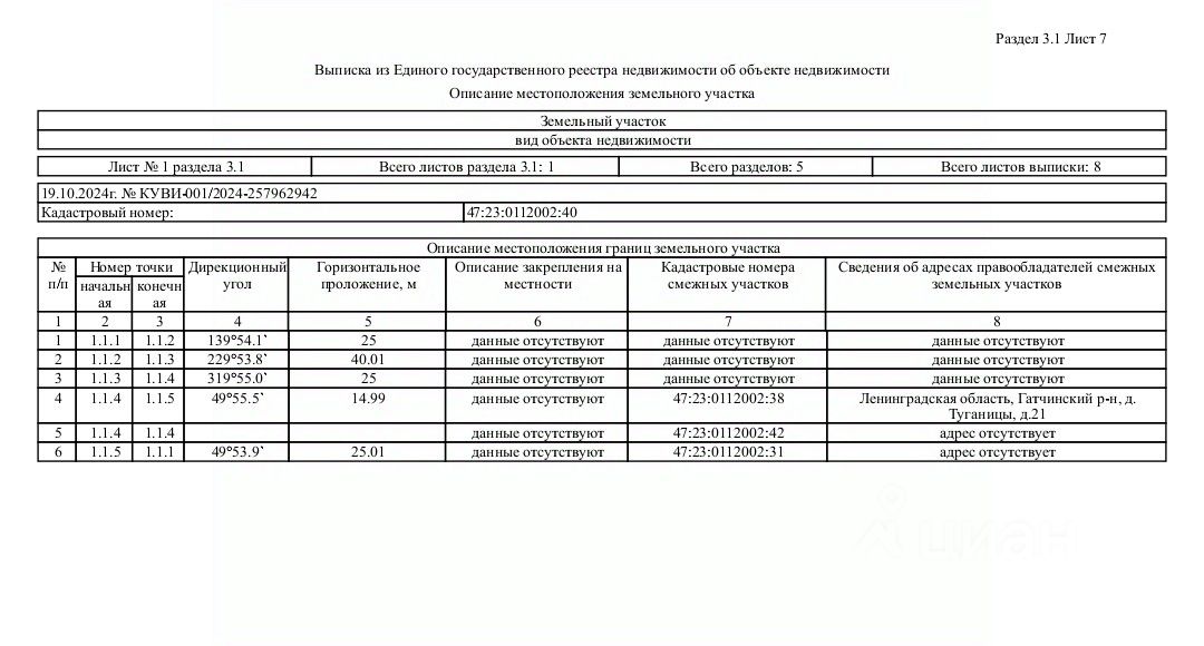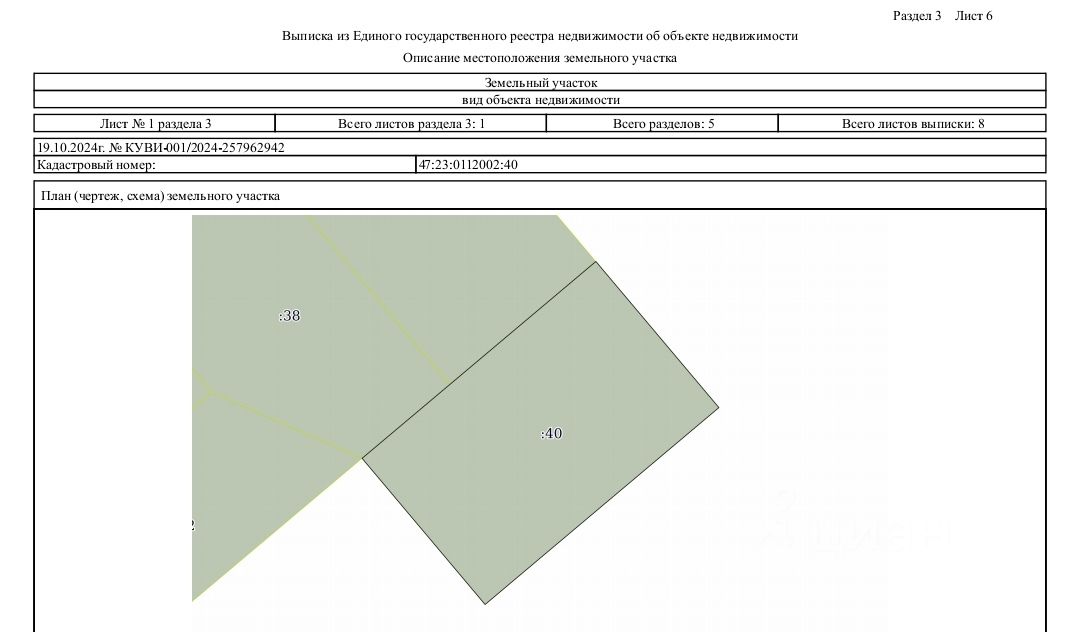 - Кадастровый номер участка: 47:23:0112002:40,
