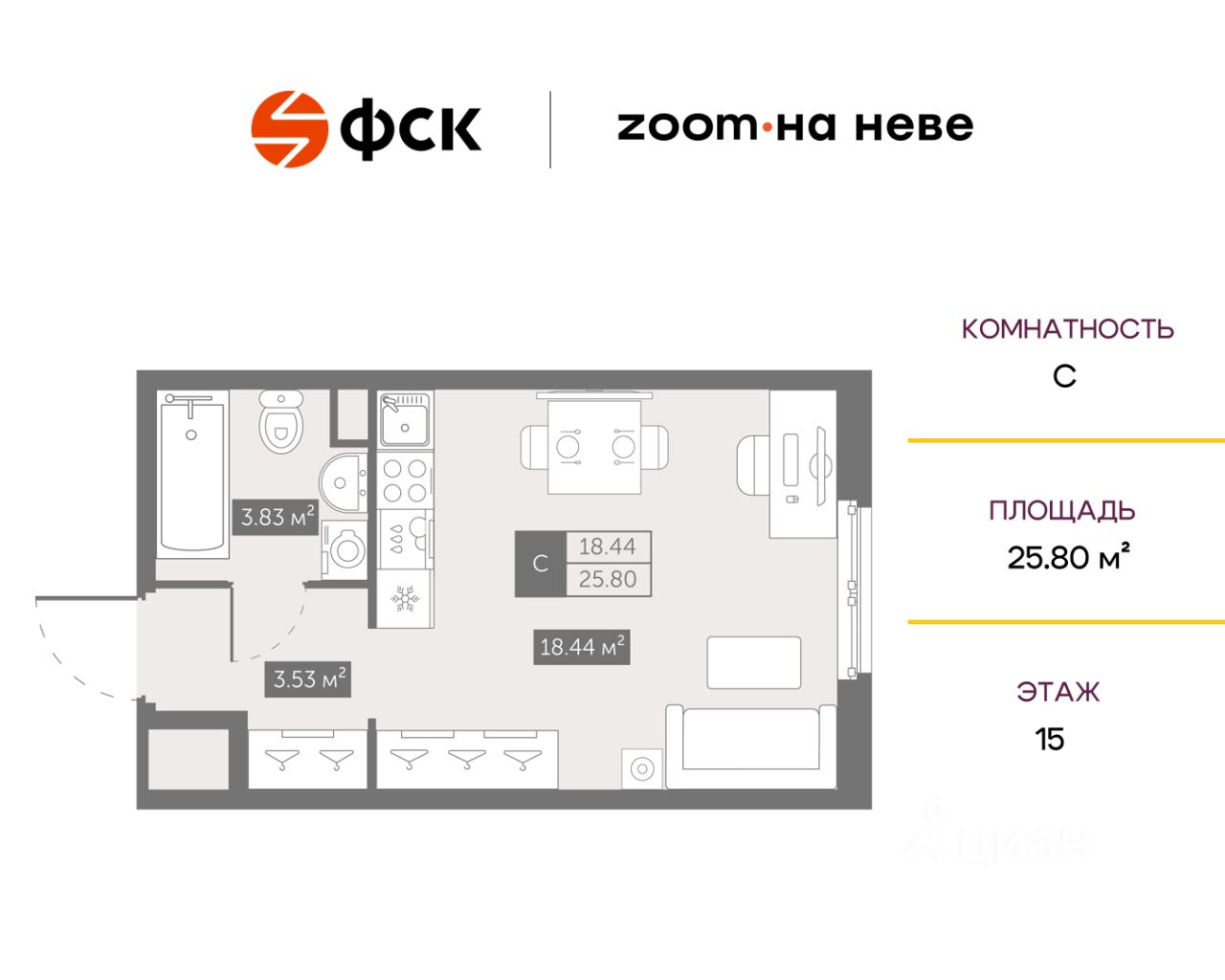 Цена со скидкой до 30% в прямой продаже от застройщика — только в этом месяце. При покупке апартаментов - паркинг за полцены. На все апартаменты действует беспроцентная рассрочка. Купите на распродаже! Покупка недвижимости в Zoom на Неве сейчас со скидкой до 30% позволит через 2 года получить доход до 6 300 000 руб. Роскошные виды на Неву. Апартамент-студия в комплексе класса бизнес-лайт Zoom на Неве на 15-м этаже. Общая площадь 25,8. Без отделки.