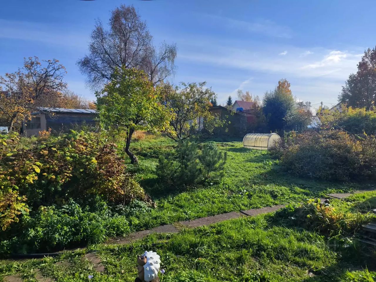 Участок разработан,ухоженный,много посадок:яблони,плодово-ягодные кустарники,многолетние цветы.Есть небольшой прудик для карасей.3 парника,колодец.