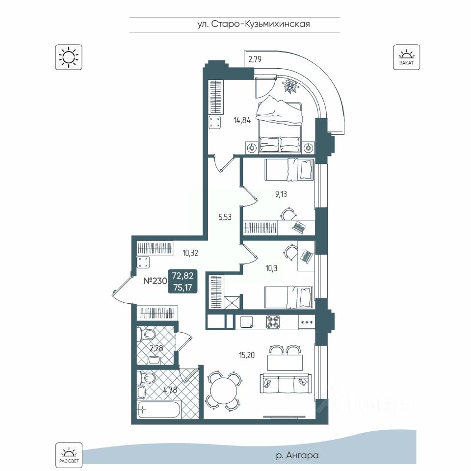 Общая площадь75,17 м2
