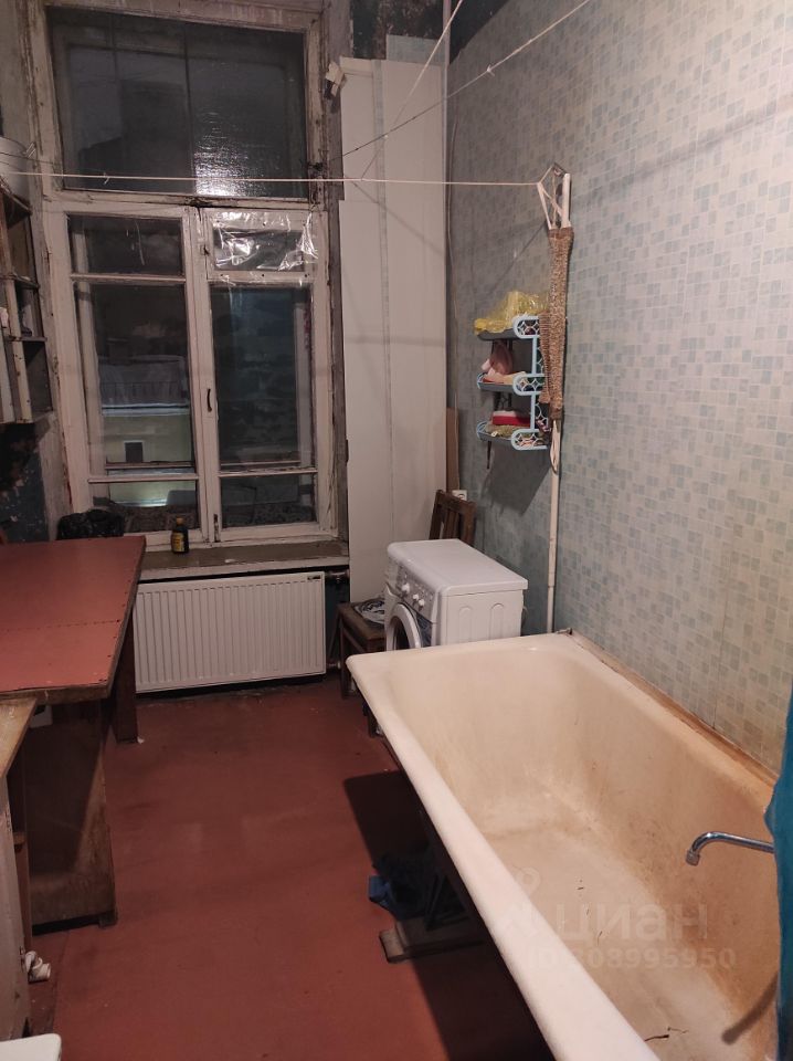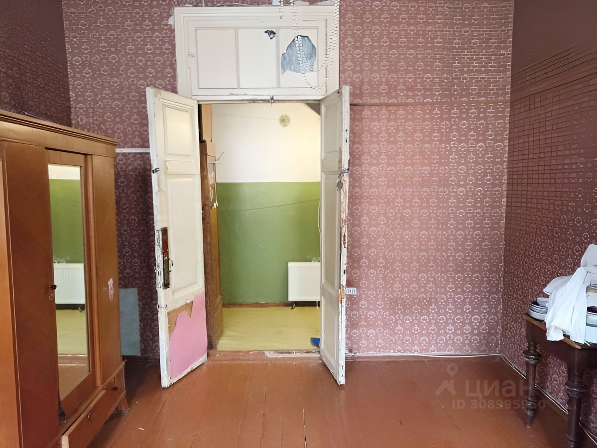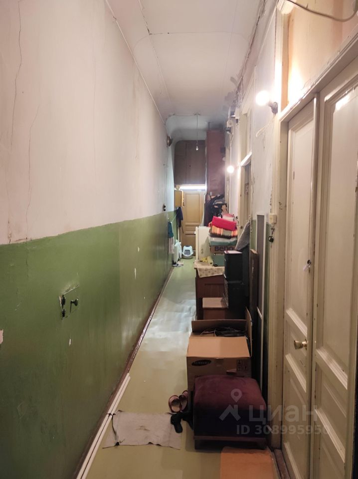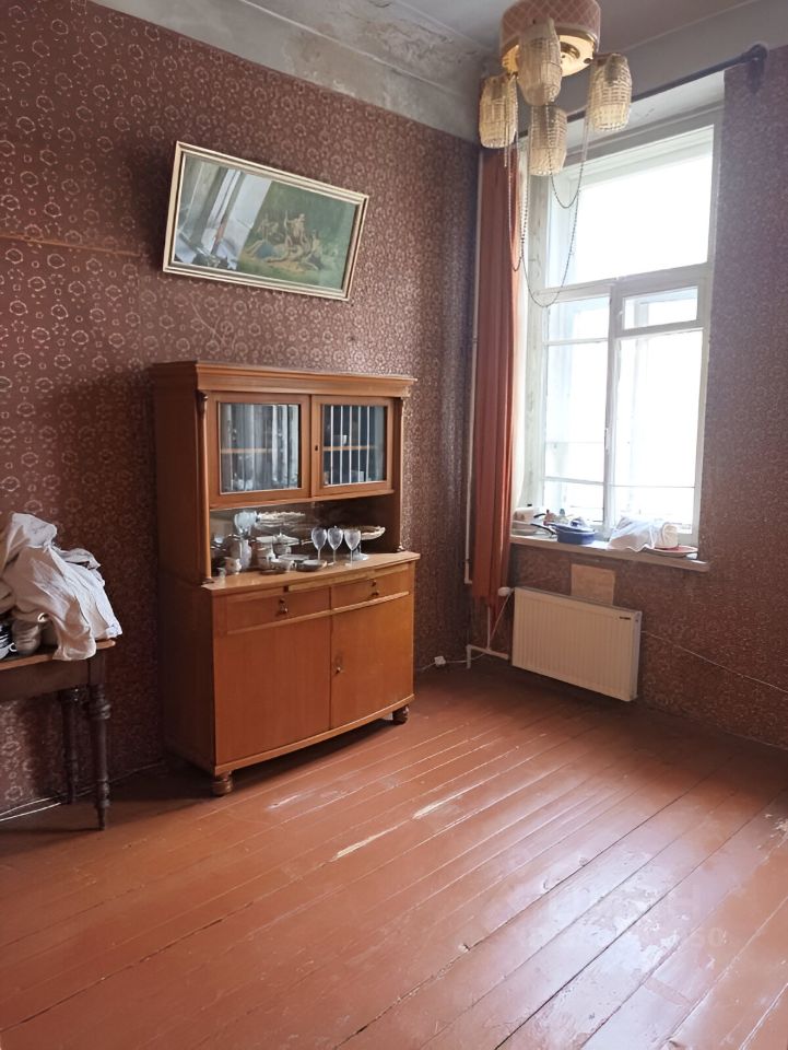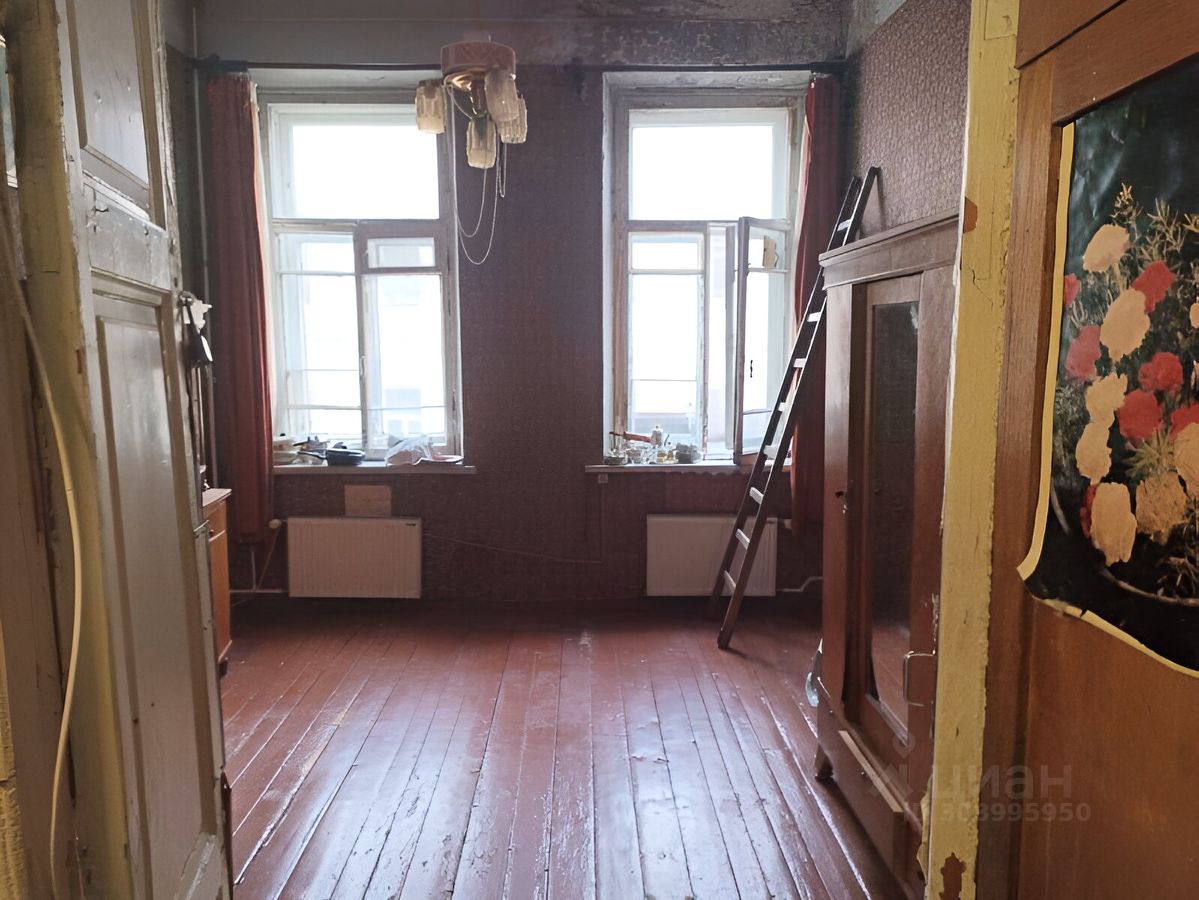 В прямой продаже комната в шестикомнатной квартире в центре Санкт-Петербурга. Вид из окна на просторный зеленый двор. Двор закрывается автоматическими воротами, есть места для парковки. Квартира имеет два входа. Состояние обычное, требуется косметический ремонт.