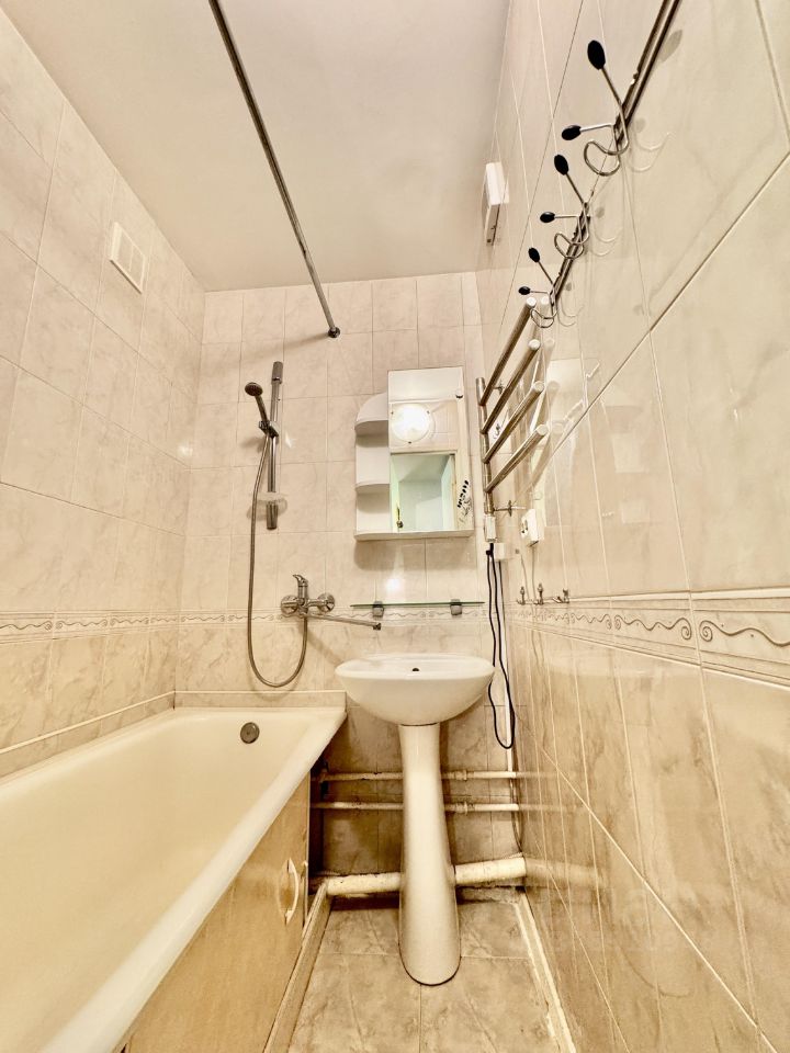 В квартире сделан косметический ремонт, поэтому она готова к проживанию. На полу залита самовыравнивающая стяжка, в туалете и ванной полностью заменены коммуникации, установлены фильтры грубой очистки и питьевой 3-х ступенчатый фильтр с краном, в комнате и на кухне установлены современные радиаторы. Балкон с видом в зеленый двор застеклен раздвижными стеклопакетами. Планировка продумана для комфортного проживания, и благодаря хорошему состоянию, вы сможете сразу заселиться. На кухне сделана специальная ниша под холодильник, а так же дополнительные места хранения у раковины.