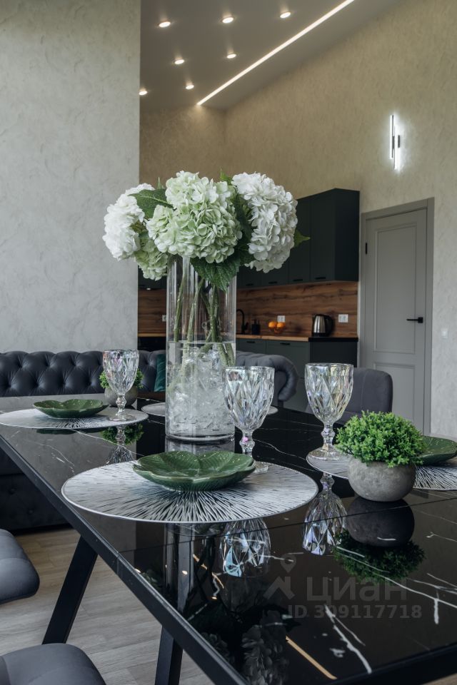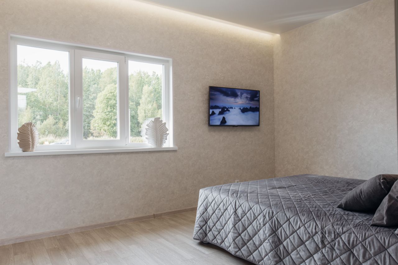 *Планировка дома* Гостиная 24,68 м.кв. совмещенная с кухней 11,79 м.кв., потолки 4 м., панорамные окна. Потолки натяжные с подсветкой, на полу кварцвинил повышенной износостойкости. В кухонной зоне выведены розетки под кухонную технику, предусмотрен слив. 2 комнаты 14,59 м.кв. каждая. Потолки натяжные с подсветкой у окна и люстрами, установлен потолочный карниз для штор, на полу кварцвинил повышенной износостойкости Санузел 6,72 м.кв.: оборудован душевой кабиной, раковиной с тумбой и зеркалом, унитазом напольным. Стены и пол выложены керамогранитом Котельная 5,3 м.кв. Прихожая 4,08 м.кв. Терраса 8,3 м.кв.