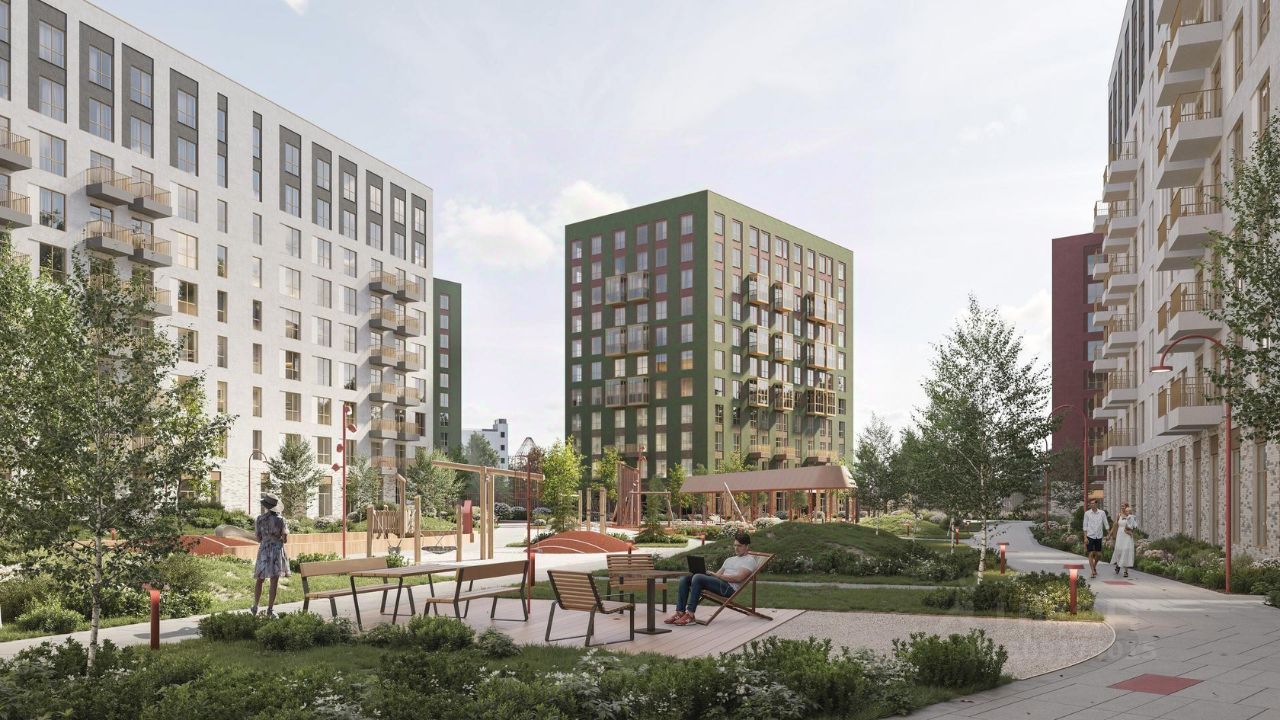Занимайтесь йогой в воркаут-пространстве и бегайте по зеленому бульвару. Предусмотрели догхабы, площадь с амфитеатром и паркинги за пределами двора.