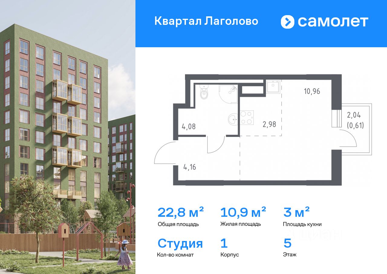 Предлагается квартира студия комфорт-класса 22,79 кв.м в корпусе 1 на 5 этаже, в ЖК ''Квартал Лаголово'' Квартира с предчистовой отделкой. Доступность дополнительных опций уточняйте у застройщика.