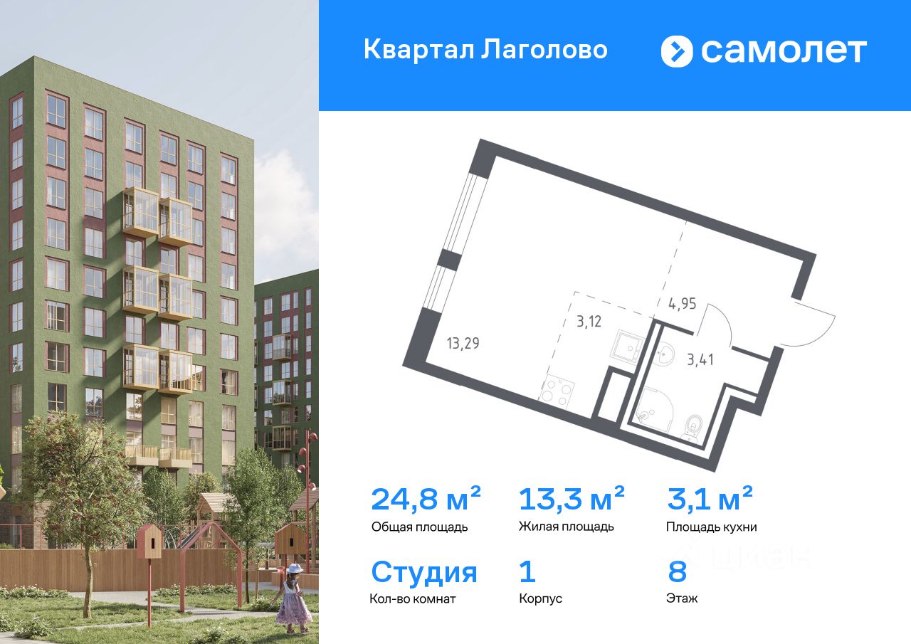 Строим кварталы для жизни с заботой о будущем. Предлагается квартира студия комфорт-класса 24,77 кв.м в корпусе 1 на 8 этаже, в ЖК ''Квартал Лаголово'' Квартира с предчистовой отделкой. Доступность дополнительных опций уточняйте у застройщика.