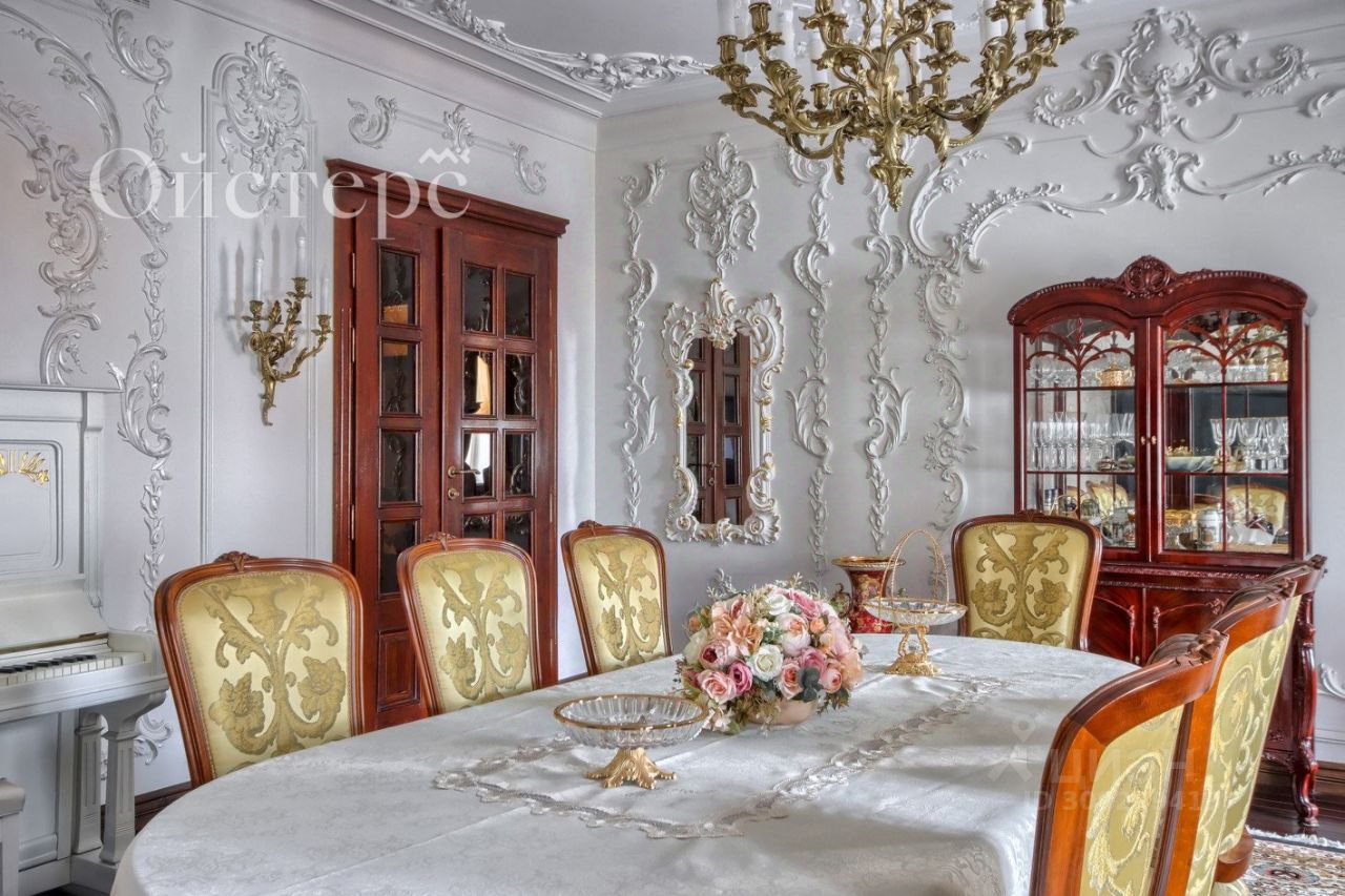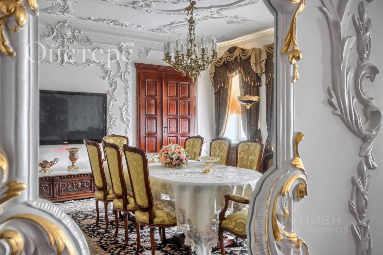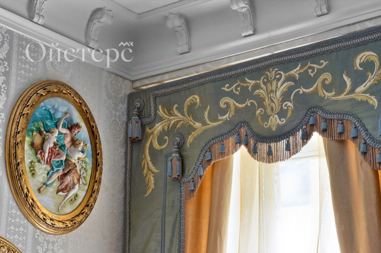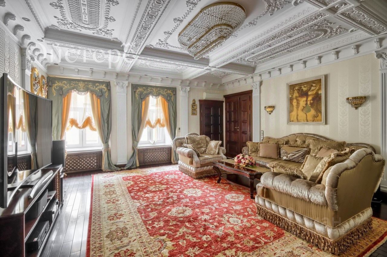 Квартира в самом центре Петербурга: Площадь 219 м². Высота потолков 3.11 метра. Интерьер оформлен с чутким вниманием к деталям: изысканная лепнина, натуральный камень и мрамор, двери и дверные порталы из массива дерева, паркет, уложенный цельным контуром без стыков.