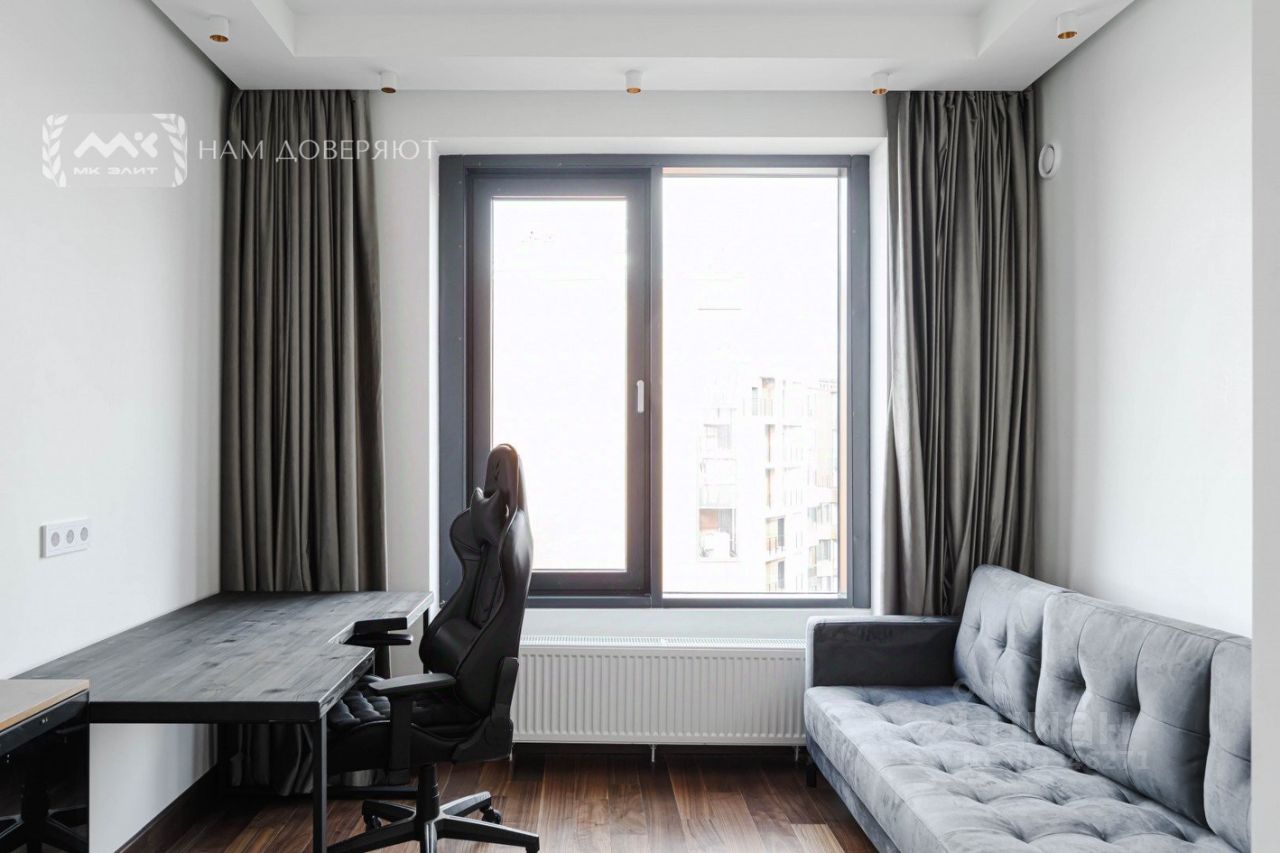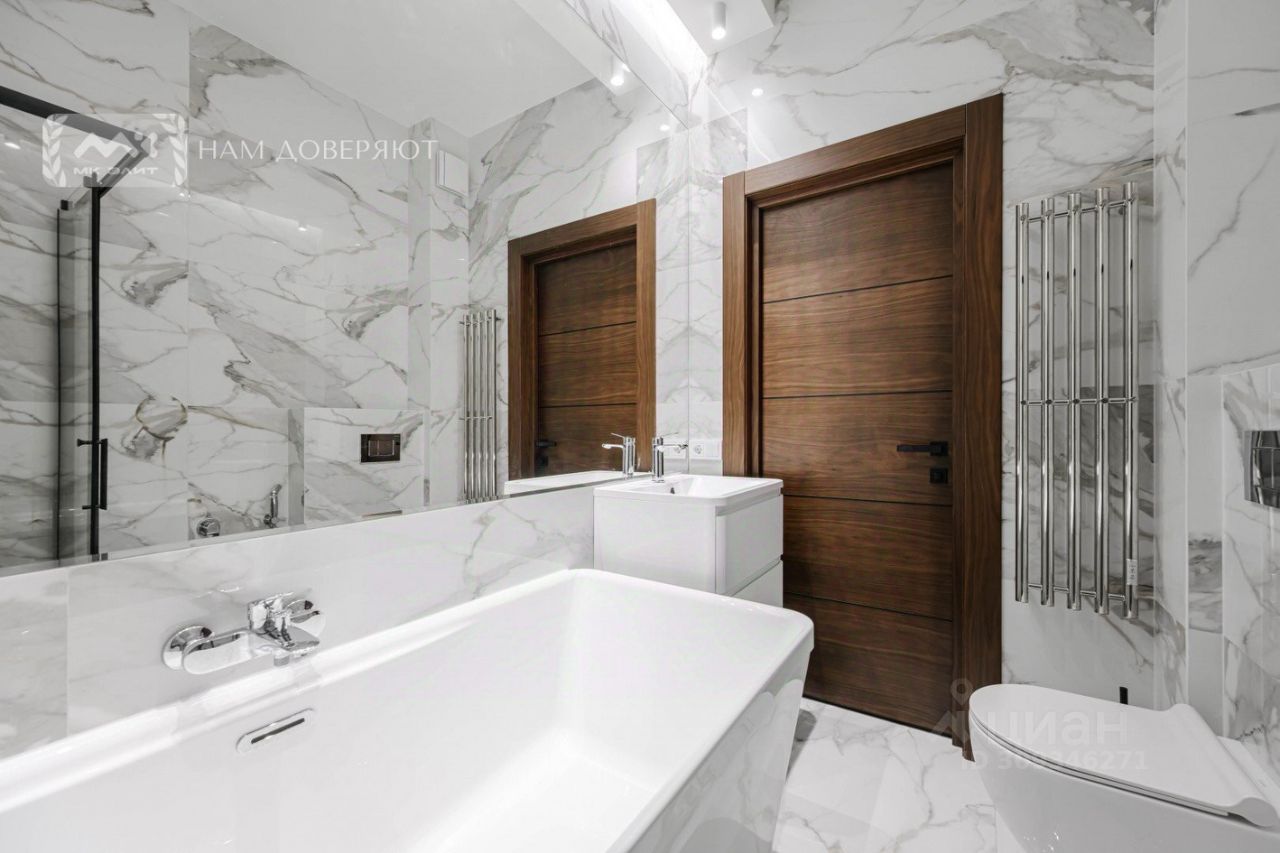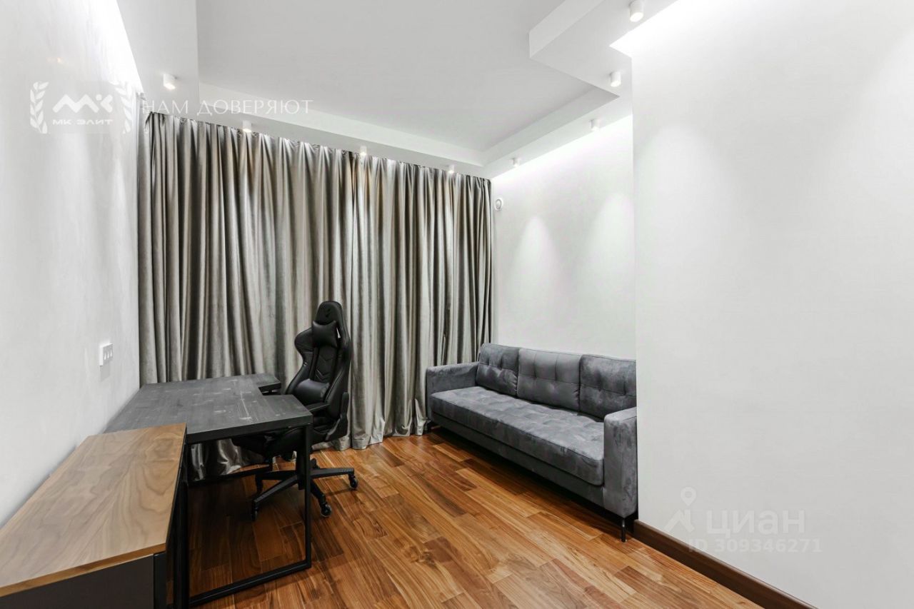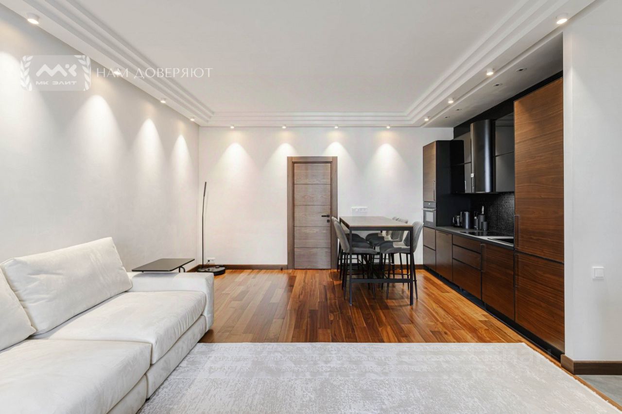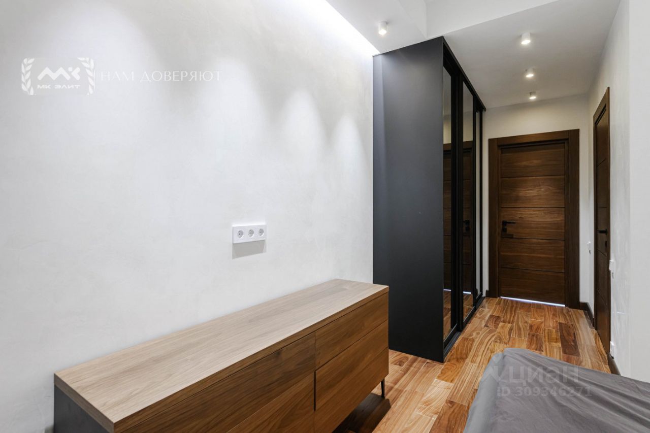 Квартира выполнена по авторскому проекту, использованы материалы класса LUX. Инженерная доска американский орех Select, двери из американского ореха, венецианская штукатурка на стенах (лучшее эко-покрытие!), функциональная стильная кухня и гардеробные с премиальными зеркальными раздвижными системами, черная бронза с тонировкой. Интерьерное освещение тщательно продумано для создания комфортной атмосферы. Два санузла и постирочная. Вся мебель изготавливалась под проект данной квартиры. Есть два парковочных места в подземном паркинге.
