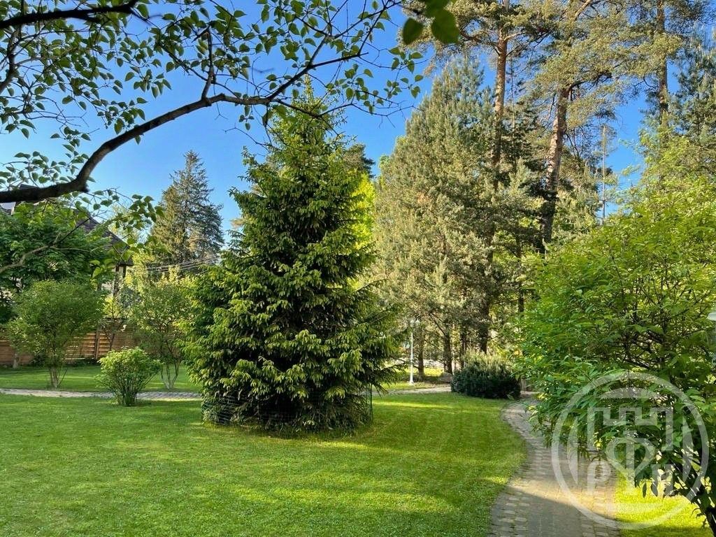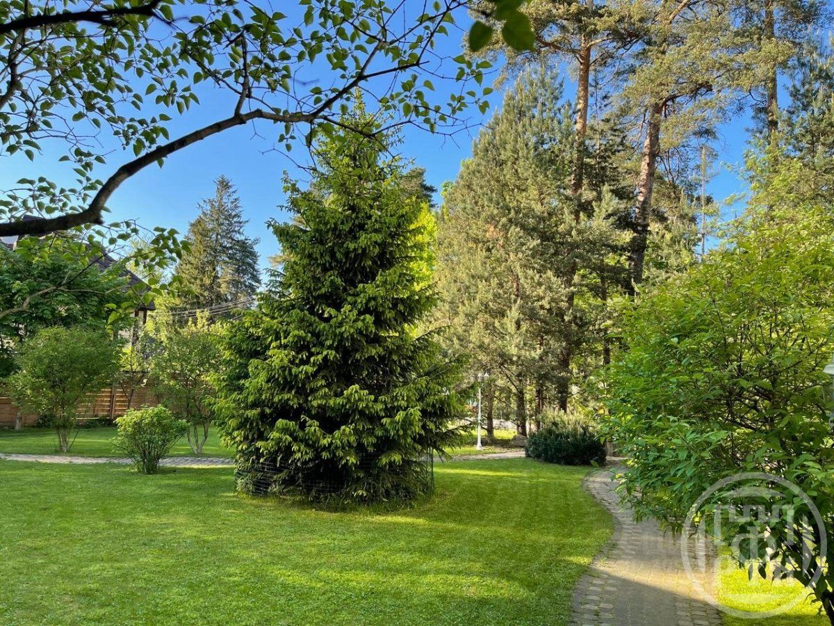 Территория участка полностью благоустроена: установлены откатные ворота, домофон, дорожки выложены плиткой, выполнен автополив, подсыпан плодородный слой земли, разбит ухоженный газон с вековыми елями.