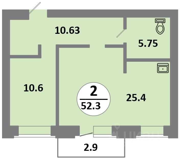 Продаётся 2-комнатная квартира в сданном доме (Соколовская, 52 (Дом 11)), срок сдачи: III-кв. 2024, общей площадью 51.9 кв.м., на 4 этаже.