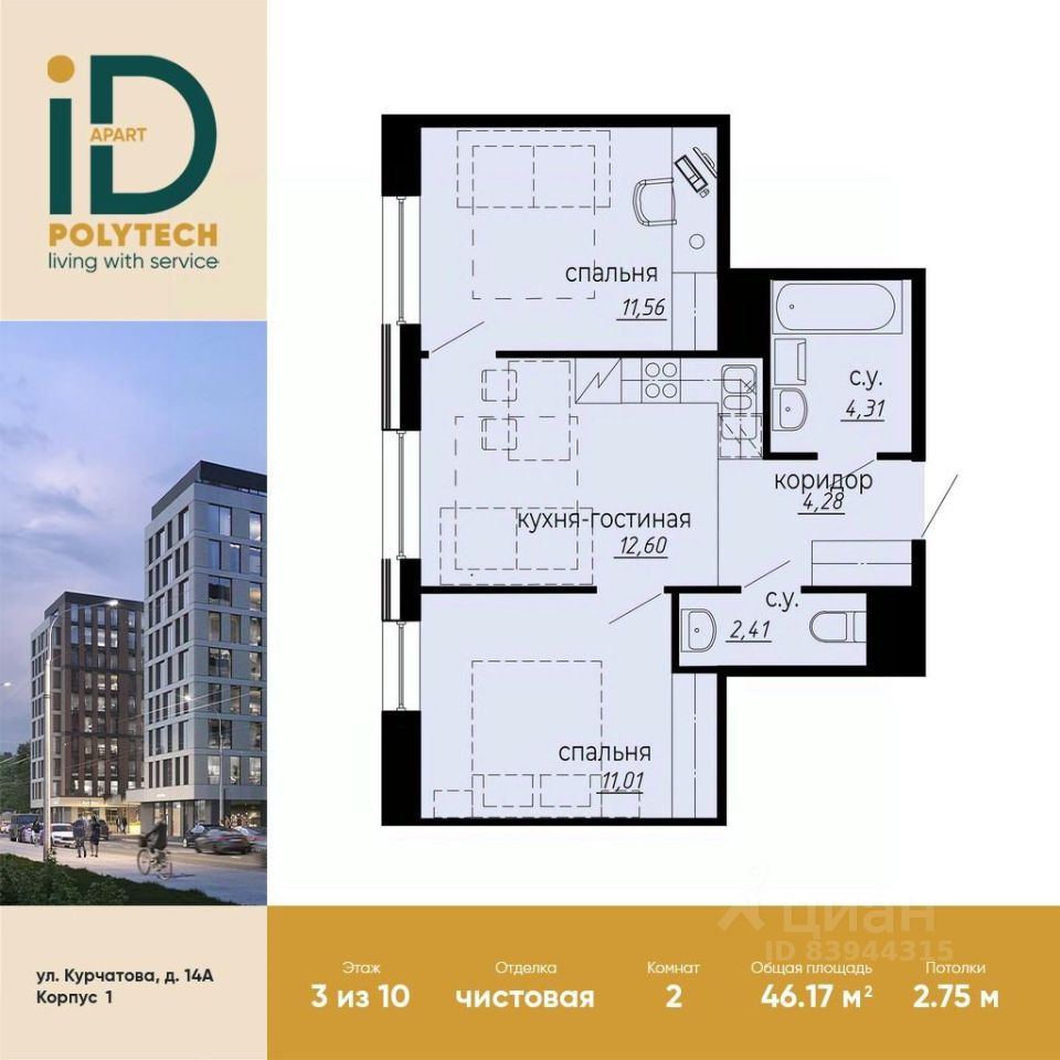 В продаже стильные апартаменты с готовой отделкой в эксклюзивном апарт-комплексе iD Polytech. Европланировка включает кухню-гостиную, две изолированные спальни, а также выделенные места для хранения. 10-этажный дом расположен в шаговой доступности от станции метро ''Политехническая'' и престижного научно-образовательного кластера Политехнического университета Петра Великого. Дорога до Петроградской стороны с ее ресторанами, барами и креативными пространствами, как и до исторического центра, займет не больше 20 минут. Удобные выезды на ЗСД и КАД позволят свободно и быстро доехать до крупнейших моллов, аэропорта и живописного пригорода - Пушкино, Петергофа, Кронштадт, Зеленогорск. iD Polytech - идеальный вариант как для постоянного проживания, так и для временного размещения и сдачи в аренду туристам. Завершение строительства запланировано на 2 квартал 2026 года.