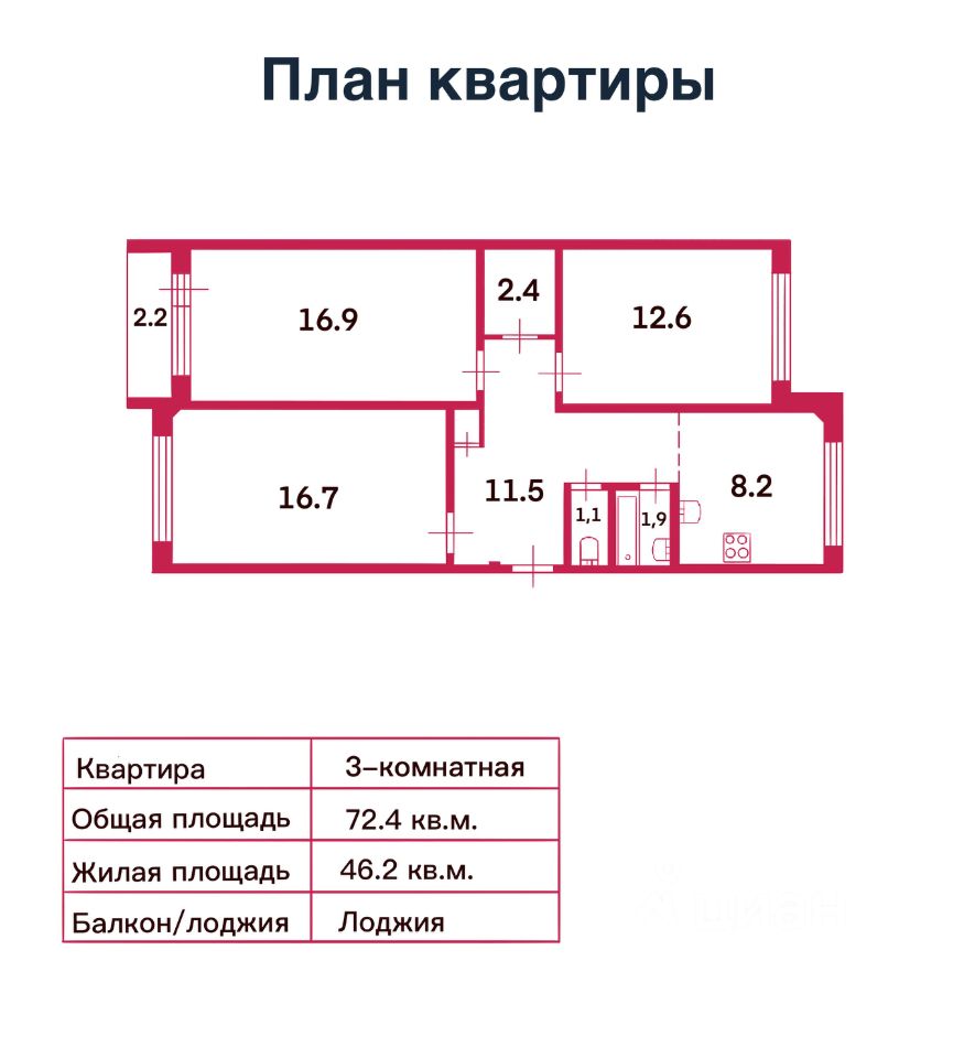 Просторная планировка позволяет рационально использовать каждый метр жилой площади. Очень уютная, чистая и тёплая квартира.