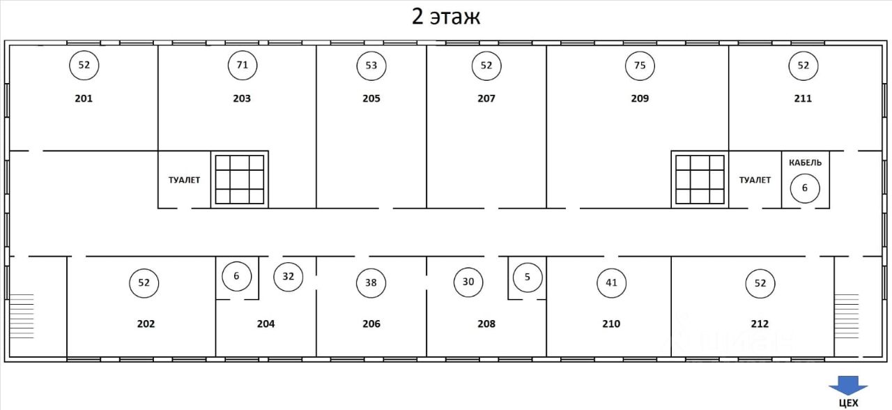 Кабинетная система, высота потоков 3,5 м, все необходимые коммуникации, кондиционирование, с/у с душевыми, возможность парковки.