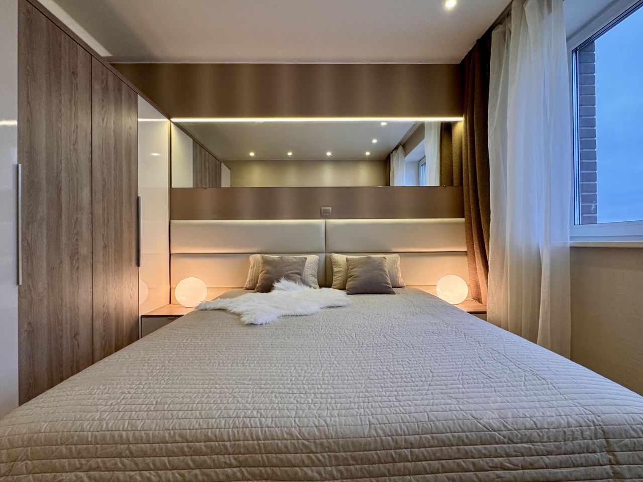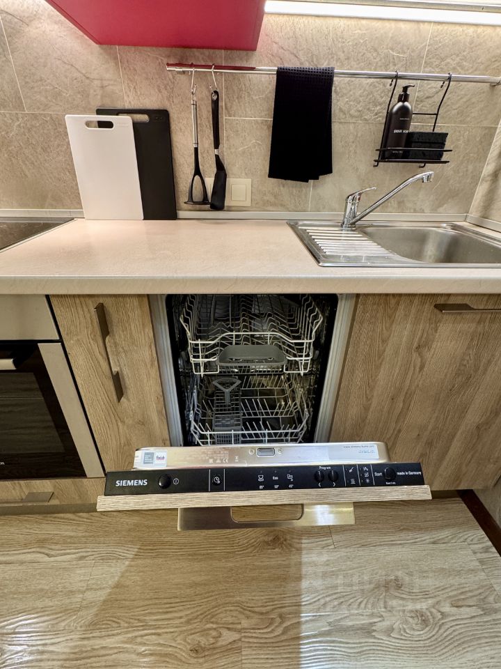 Квартира в отличном состоянии, есть вся необходимая мебель и бытовая техника Bosch и Siemens. Выполнен ремонт по авторскому дизайн-проекту. Изящные интерьерные и световые решения. Шкафы-купе. Встроенная кухня со всей необходимой бытовой техникой.