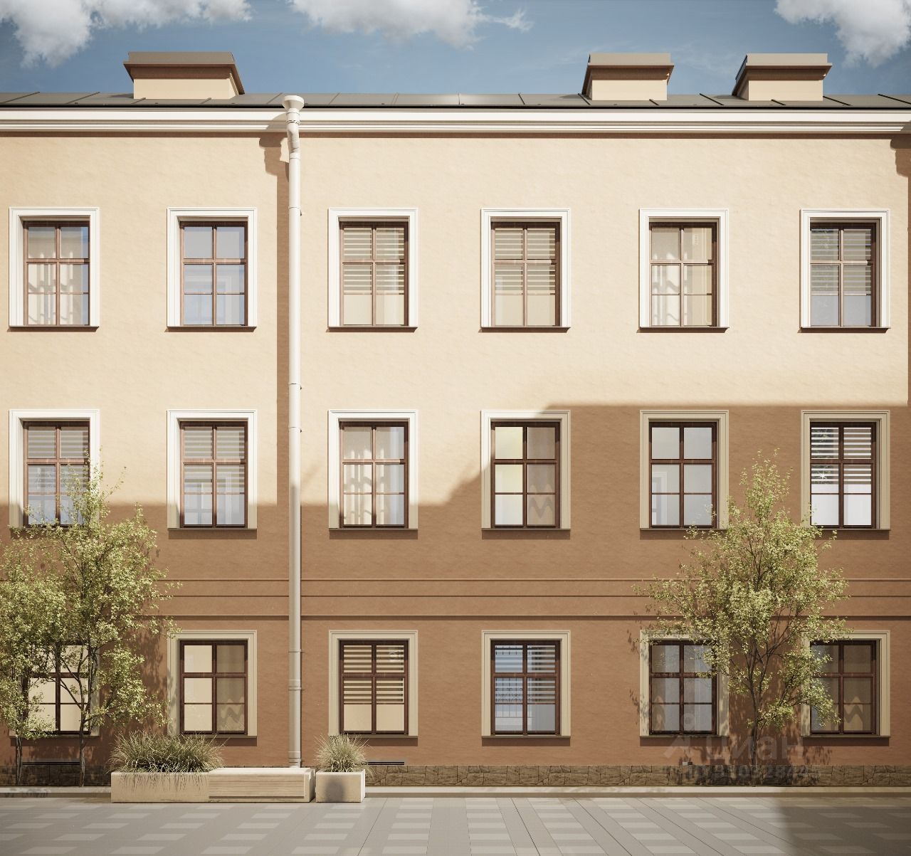 Культурное наследие сочетается с современными технологиями: умный дом, центральное кондиционирование, система очистки воды и контроль доступа 24/7, Wi-Fi во дворе. Классические фасады и приватный двор создают камерную атмосферу проекта бизнес-класса.