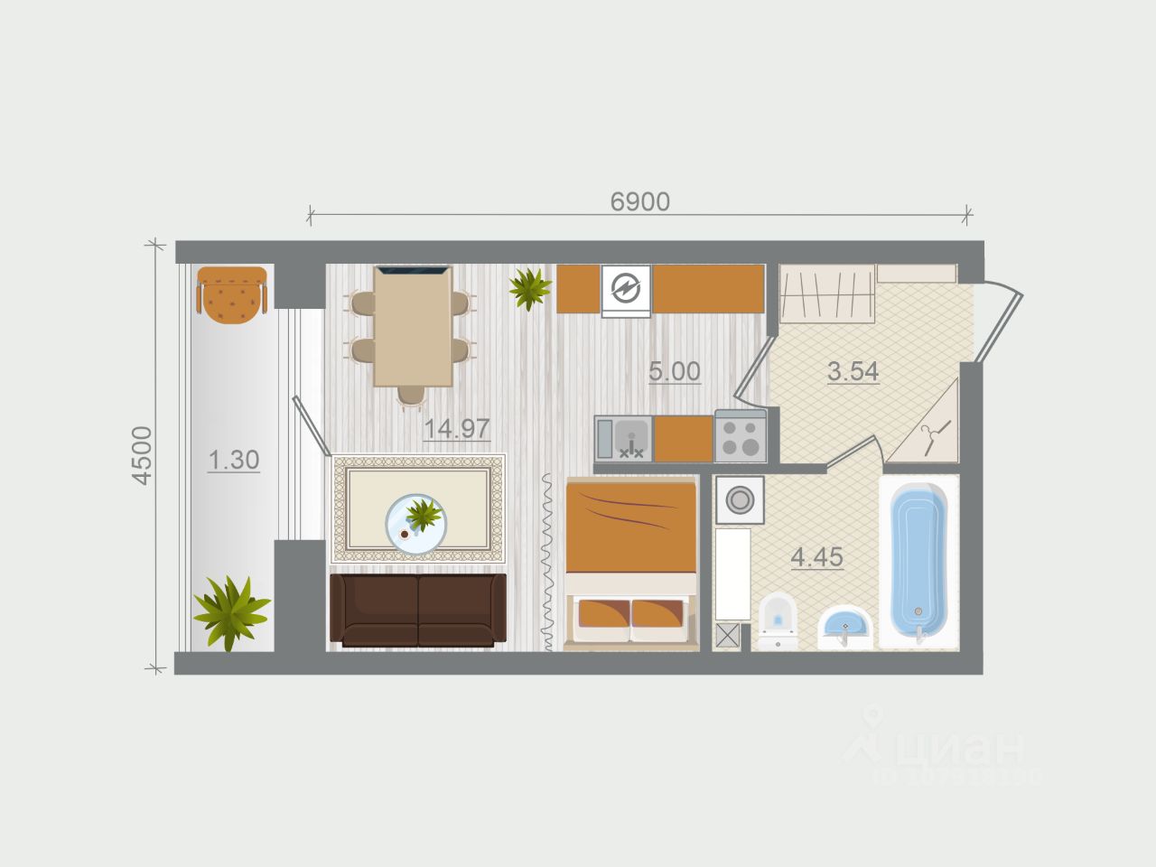 Общая площадь29,26 м2