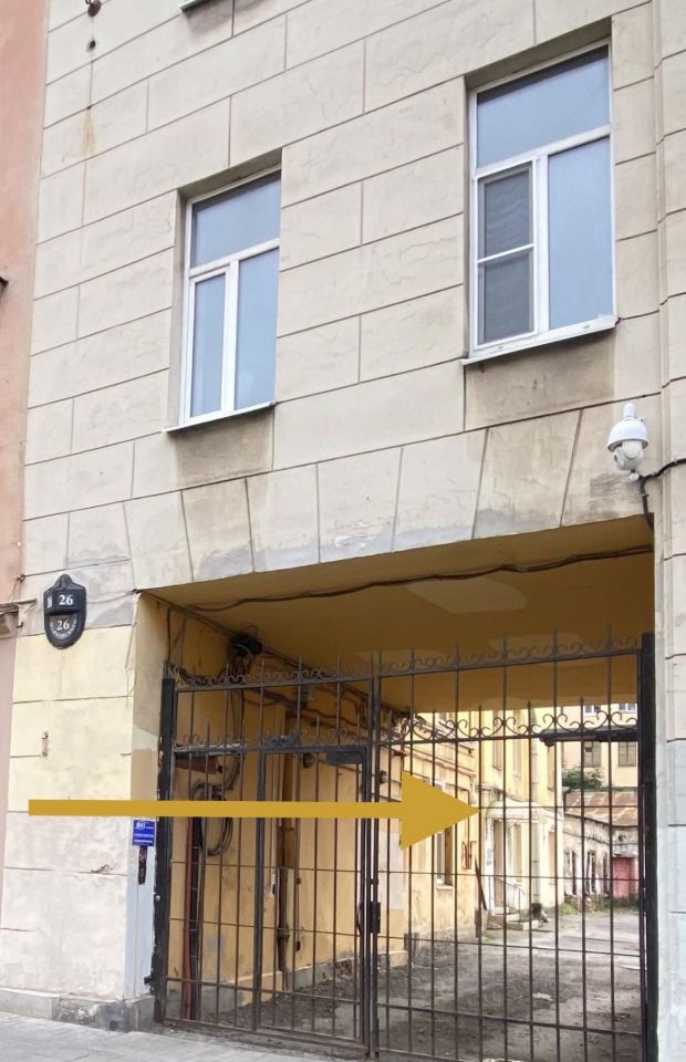 Вход в помещение осуществляется через большую арку с улицы Маяковского, Парковочная территория у входа в помещение на неограниченное количество авто мест, т к жители дома и соседних домов не имеют доступа во двор.