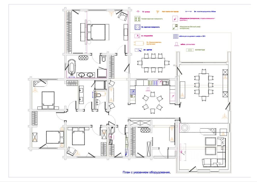 Мастер спальня с гардеробной и своим санузлом, три просторные спальни, санузел, душевая, постирочная, кухня, гостиная-столовая, терраса. Коммуникации:
