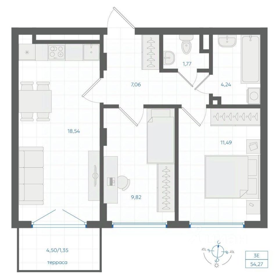 Квартиры комфорт-класса площадью до 77 кв.м с чистовой отделкой.
