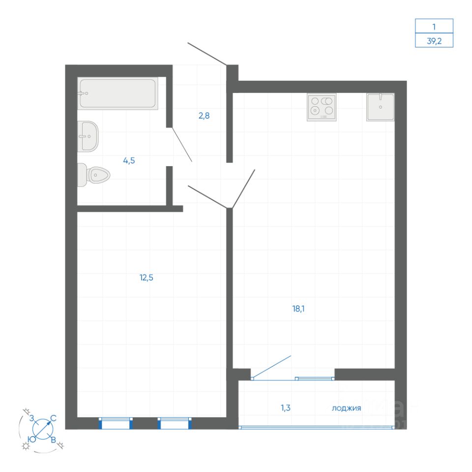 Общая площадь38,9 м2
