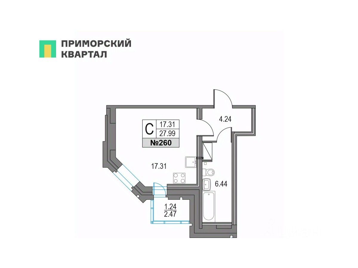 Продается студия общей площадью 27.99 кв.м., на 21 этаже в построенном и заселенном корпусе 41 (год сдачи: 2024 г.) Квартиры в ЖК ''Приморский квартал'' продаются напрямую от застройщика ''Мегалит - Охта Групп'' по договору купли-продажи. Приморский квартал - проект современной квартальной застройки комфорт-класса в 400 метрах от станции метро ''Пионерская''. Квартал включает 13 жилых домов, высотность которых варьируется от 12 до 25 этажей, а также различные объекты социальной инфраструктуры. Проект реализуется двумя партнерами инвестиционно-строительными компаниями ''Мегалит'' и ''Охта Групп''. В состав квартала войдут три детских сада на 460 мест и общеобразовательная школа на 1500 мест. Проектом предусмотрено большое количество коммерческих помещений для размещения всего, что нужно для комфортной городской жизни - магазины, аптеки, кафе, салоны красоты и другое. Приморский квартал расположен в Приморском районе, на территории, ограниченной Коломяжским проспектом, проспектом Испытателей, Богатырским проспектом и улицей Матроса Железняка.