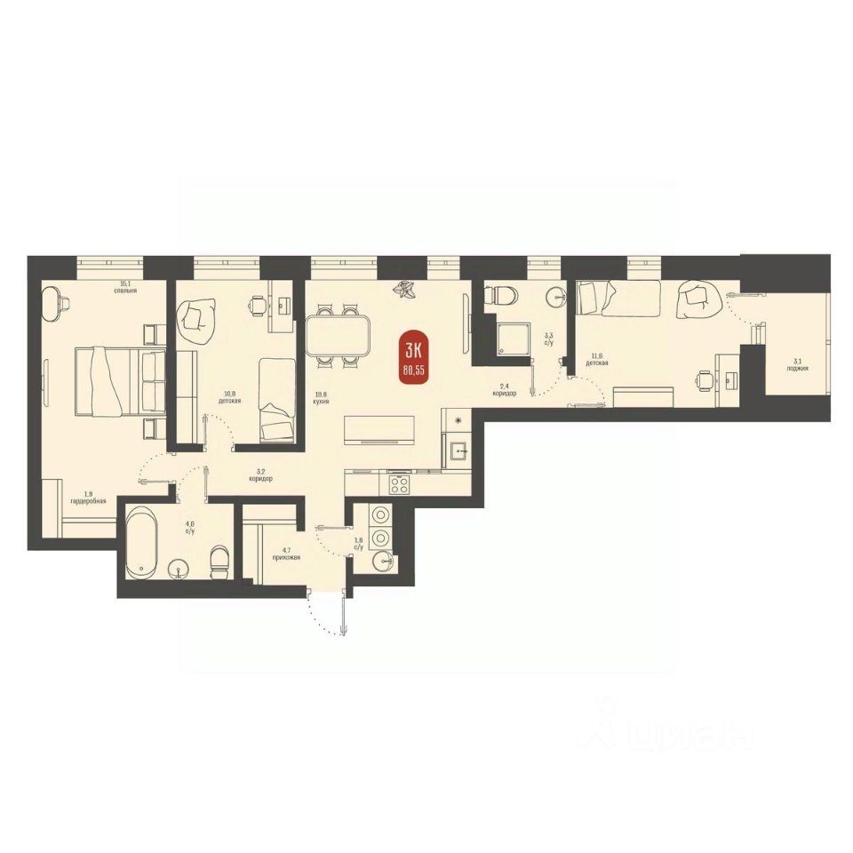 Общая площадь80,55 м2